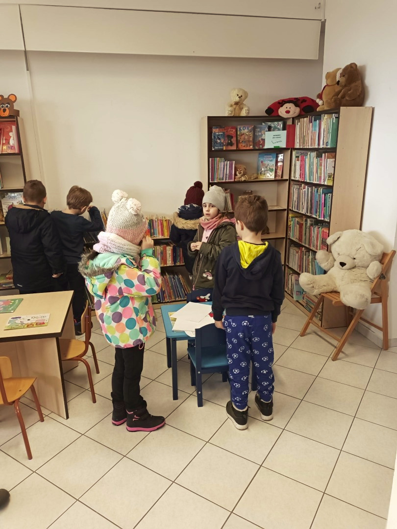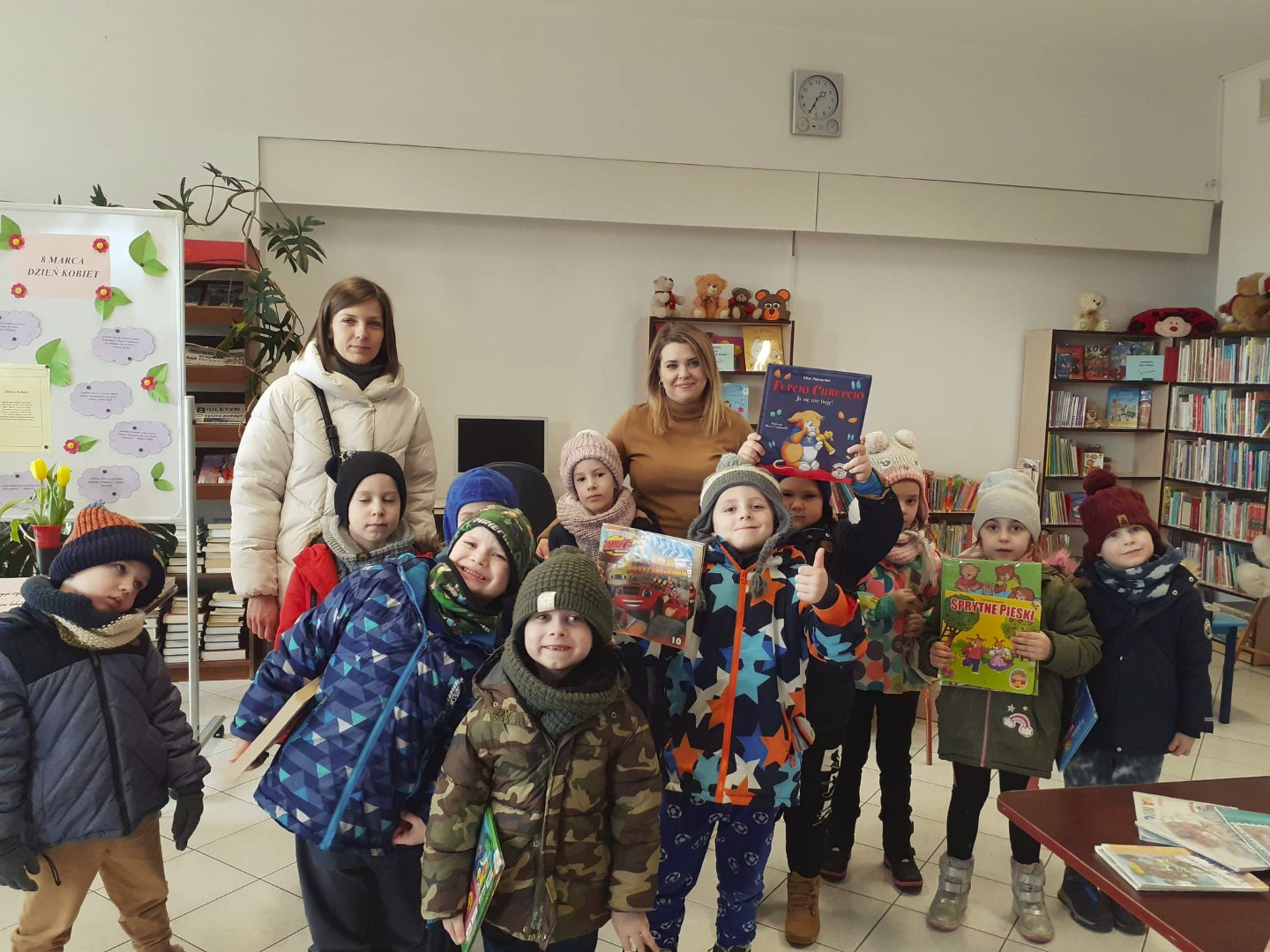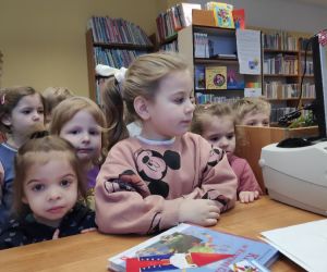 W dniu 8 lutego dzieci z grupy "Zajączki" odwiedziły naszą Filię. Poznały zasady zachowania się w bibliotece i korzystania z książek i czasopism. Widziały jak obsługiwany jest czytelnik, miały możliwość wczytywania kodów na książkach. Pani bibliotekarka wyjaśniła różnice między księgarnią a biblioteką. Zachęcała dzieci do zapisywania się i wypożyczania książek. Dzieci wysłuchały opowiadania " Jak zajączek szukał drogi do domu". Na koniec każde dziecko dostało szablon zakładki do książki do pokolorowania w przedszkolu.