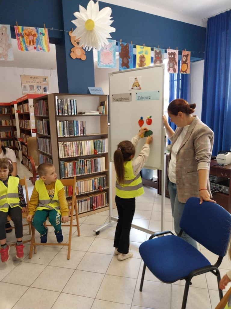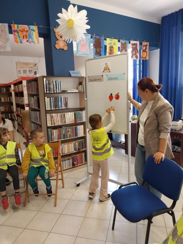 Tematem tego spotkania było poznanie zasad korzystania z biblioteki – w jaki sposób wypożyczać i zwracać książki, jak o nie dbać oraz jakie zasady obowiązują czytelników wewnątrz budynku. Omówiono również księgozbiór biblioteki – uczestnicy mieli okazję zobaczyć różnorodne książki, zarówno literaturę dziecięcą, młodzieżową, jak i popularnonaukową. Po założeniu kart bibliotecznych uczestnicy zajęć wybrali książki i audiobooki które najbardziej ich interesowały.