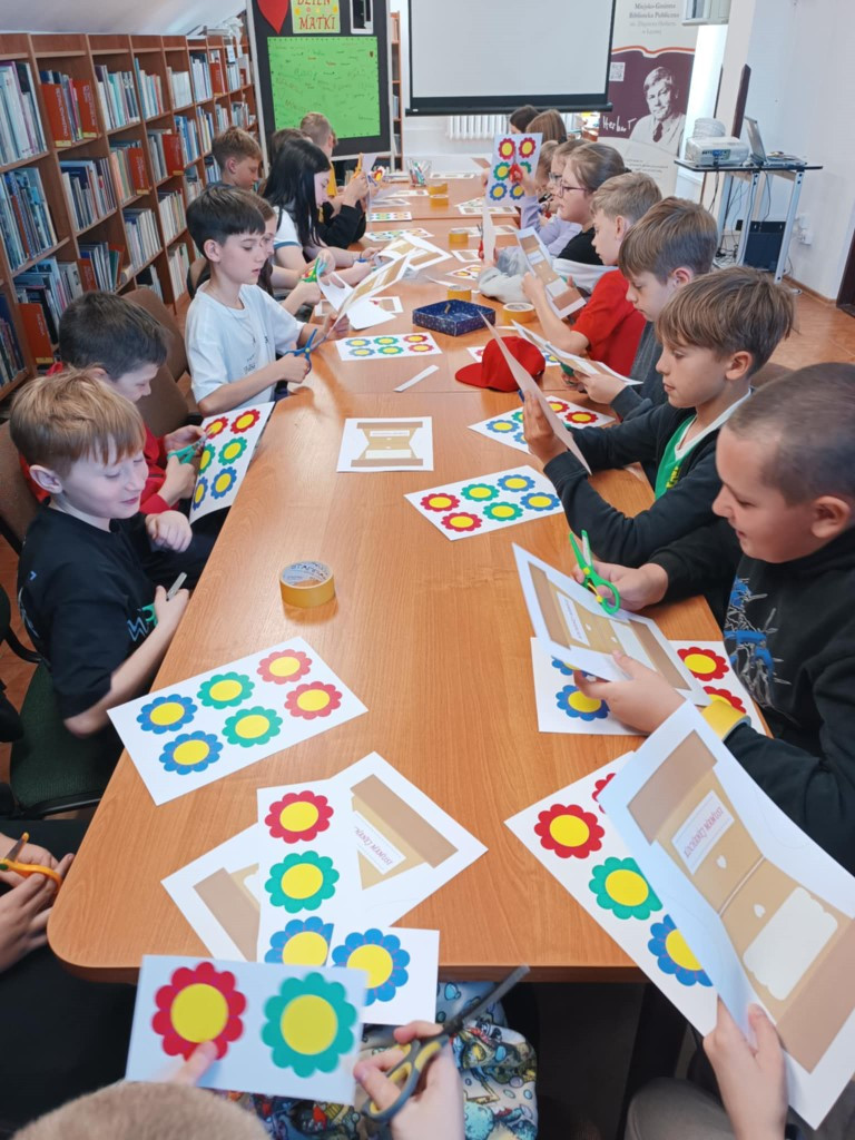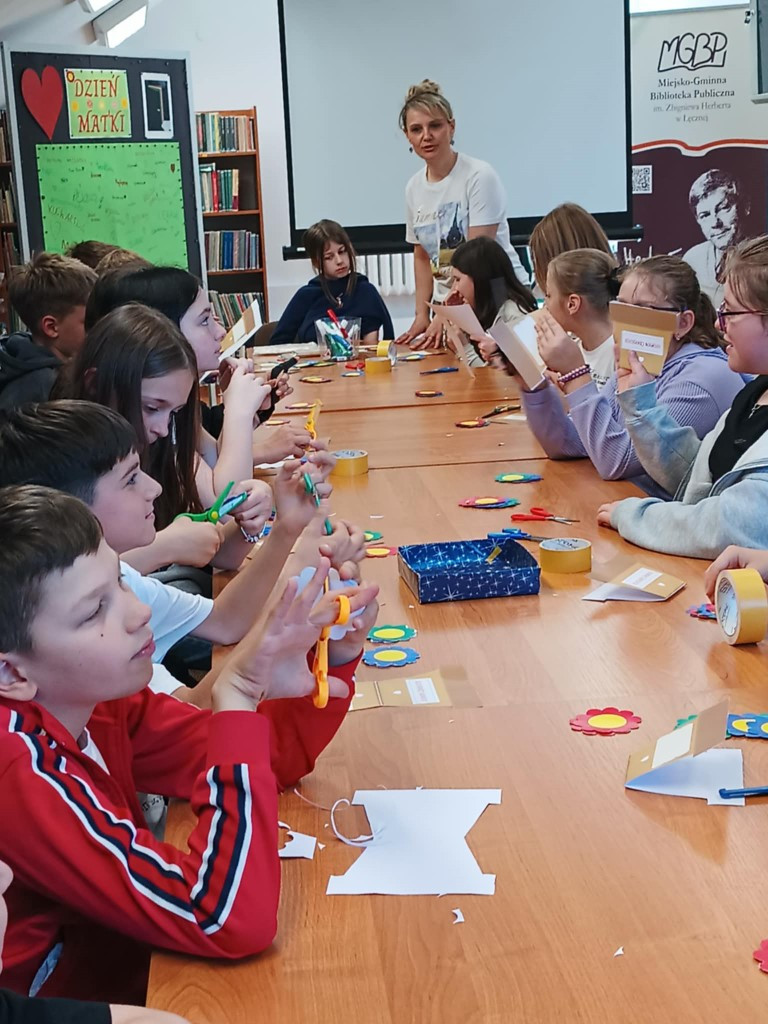 21 maja 2025 r. w Bibliotece Głównej przy ul. Bożnicznej gościliśmy uczniów klasy 4A ze Szkoły Podstawowej nr 2 w Łęcznej wraz z wychowawczynią. Spotkanie odbyło się w ramach warsztatów poświęconych zbliżającemu się Dniu Matki.