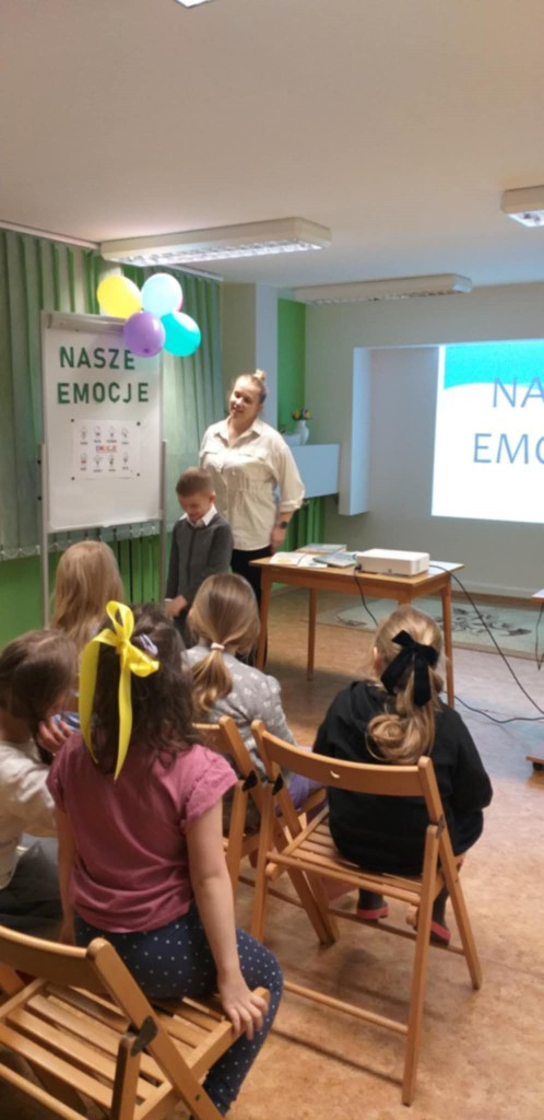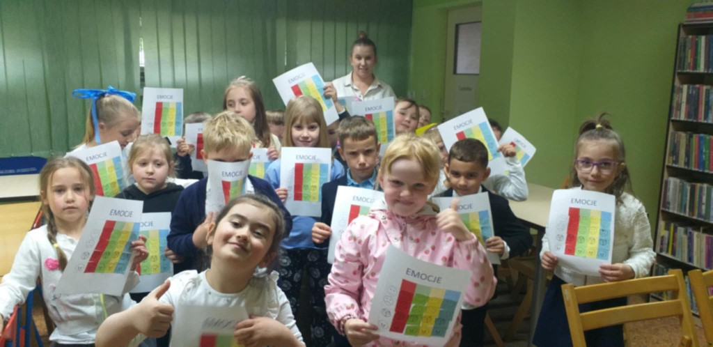 19.05.2025 r naszą bibliotekę odwiedziła grupa 0C ze Szkoły Podstawowej nr 4. Rozmawialiśmy o emocjach, jak je nazwać i jaką role odgrywają w naszym życiu. Dzieci wysłuchały opowiadania o miłości pt. „Truskawka” z książki Anny Paszkiewicz pt. „Moje Emocje. Bajki o uczuciach”. Pobawiliśmy się w kalambury – rzucając kostką przedstawiającą różne miny uczeń losował jaką emocję ma przedstawić grupie. Na koniec dzieci w błyskawicznym tempie wykonały kodowanie.