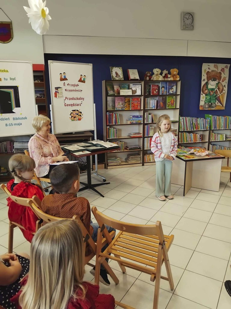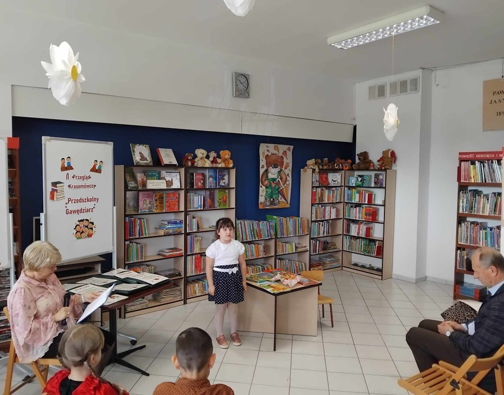 W dniu 12 maja w Filii nr 2 odbył się II Przegląd Krasomówczy pn. „Przedszkolny Gawędziarz”, w którym udział wzięły dzieci z Przedszkola Publicznego nr 3 i 4 w Łęcznej. Przegląd zorganizowany został z okazji obchodów Ogólnopolskiego „Tygodnia Bibliotek”, Przedszkolaki miały za zadanie opowiedzieć ulubioną bajkę, którą czytali im dorośli np. rodzice i dziadkowie. Wśród opowiadanych bajek znalazła się ta o „Czerwonym Kapturku”, „Roszpunce”, „Trzech małych świnkach”, „Wilku i siedmiu koźlątkach ” i inne. Dzieci pięknie się zaprezentowały. Wykazały się dużą znajomością bajek, oryginalnym słownictwem, wyobraźnią i kreatywnością. Były świetnie przygotowane i udowodniły, że posiadają umiejętność występowania i zaprezentowania się przed publicznością. Każde z nich zasługuje na miano Przedszkolnego Gawędziarza. Po wysłuchaniu wszystkich wystąpień, przedszkolakom wręczono dyplomy uczestnictwa, książeczki ufundowane przez MGBP oraz gadżety przekazane przez Urząd Miejski w Łęcznej. Panie z przedszkoli otrzymały podziękowania za pomoc i współpracę w realizacji Przeglądu. Na koniec spotkania Bibliotekarki otrzymały życzenia od Krzysztofa Matczuka Przewodniczącego Rady Miejskiej oraz Dyrekcji przedszkoli. Życzenia złożone zostały na ręce Moniki Mazurkiewicz Dyrektora Miejsko-Gminnej Biblioteki Publicznej im .Zbigniewa Herberta w Łęcznej.