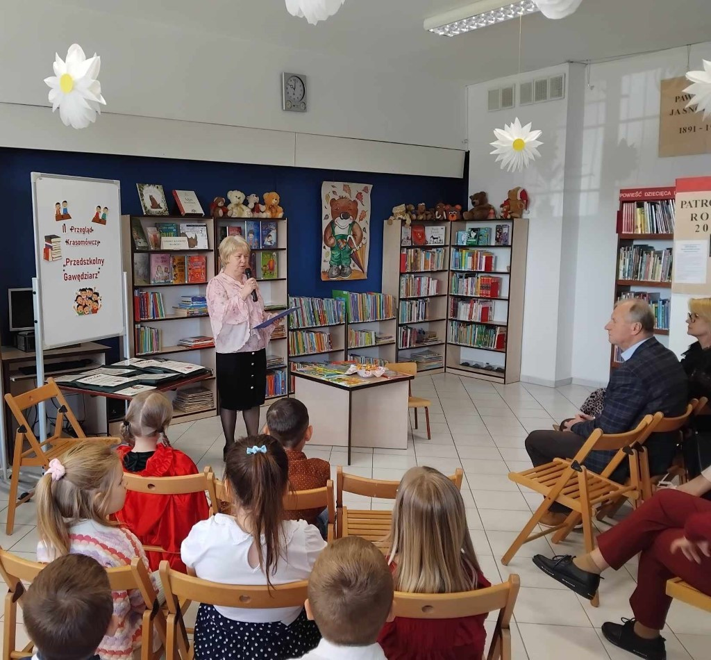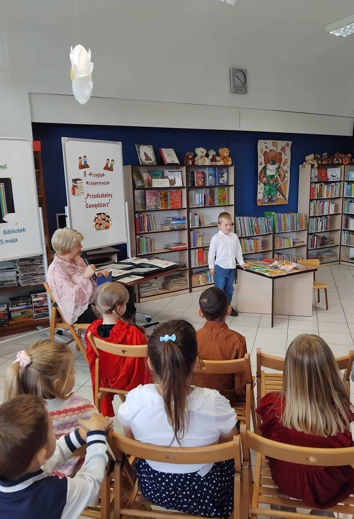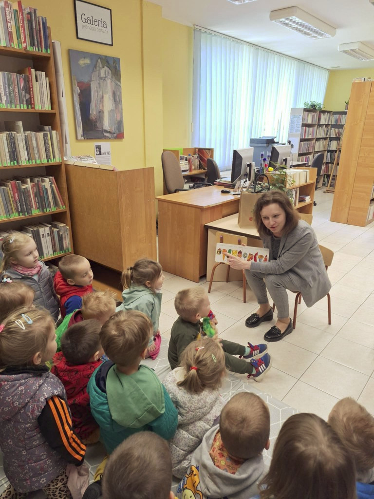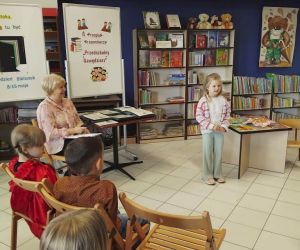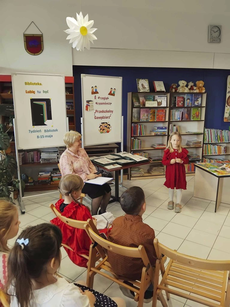 Nie zabrakło też zabawy – przedszkolaki uczestniczyły w ruchowej aktywności z przechodzeniem przez tunel z książką. Dzieci słuchały wiersza "Tygrys w bibliotece" i wesołych piosenek o książkach i bibliotece.