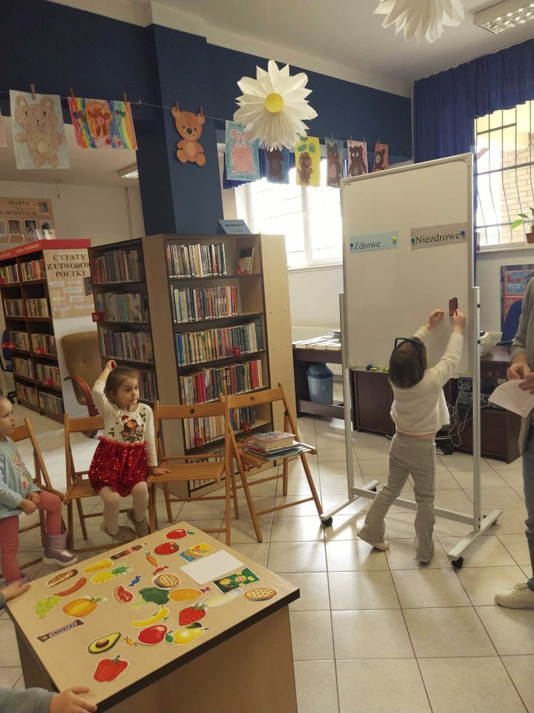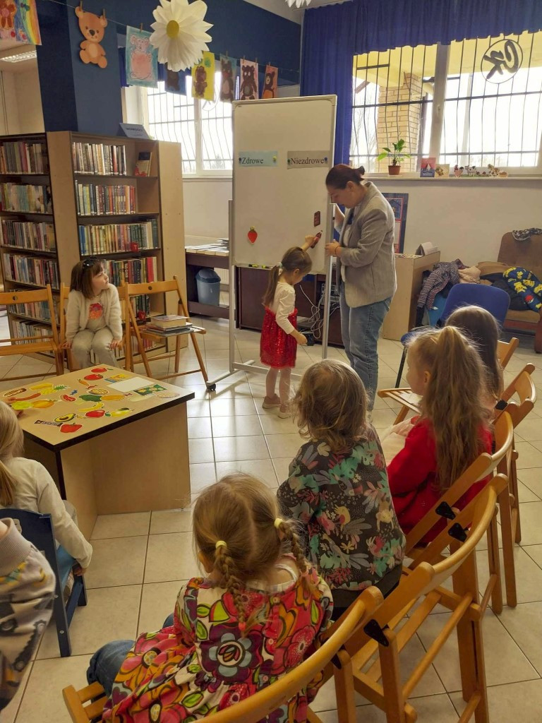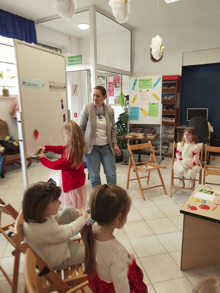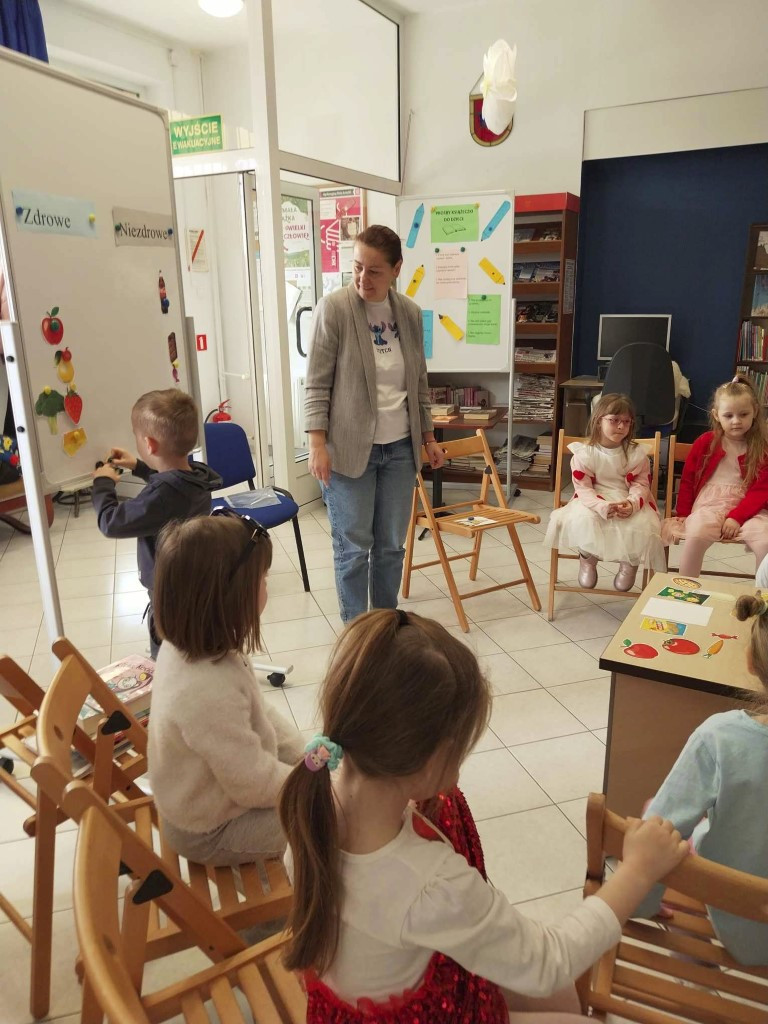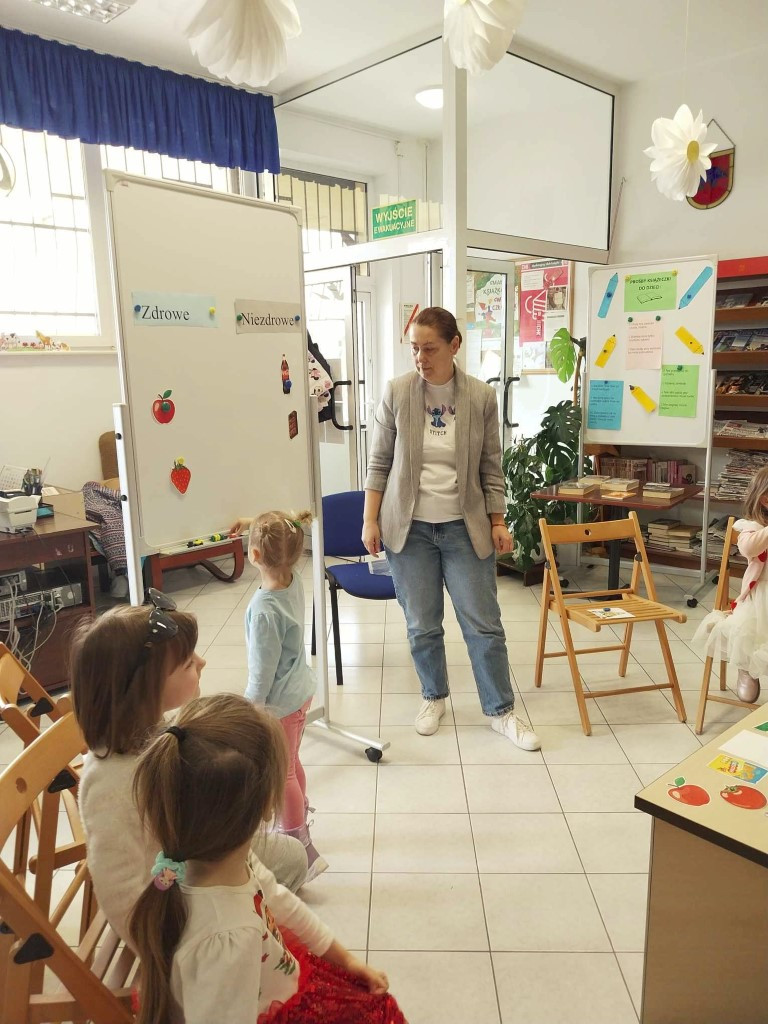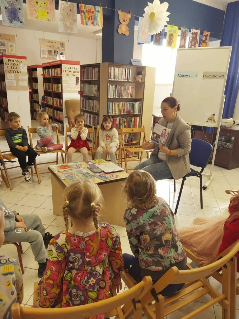 10 kwietnia Filie nr 2 odwiedziły „Motylki” z Przedszkola Publicznego nr 4. W tym tygodniu obchodziliśmy Światowy Dzień Zdrowia, dlatego wraz z przedszkolakami mówiliśmy, o tym jak być zdrowym. „Motylki” wysłuchały książki pt. „ Jadzia Pętelka idzie na szczepienie” Barbary Supeł oraz fragmentu „ Po co ten Stres ?!” Dagmar Geisler. Na koniec dzieci pogrupowały produkty z wyciętych obrazków dzieląc je na te zdrowe i te których trzeba unikać. Dziękujemy za spotkanie i zapraszamy na kolejne.
