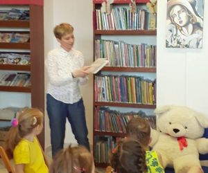 Na zakończenie bibliotekarka opowiedziała dzieciom o ciekawych książkach, które można wypożyczyć w bibliotece, zachęciła przedszkolaków do częstego czytania bajek z rodzicami i udziału w akcji: „Mała Książka - Wielki Człowiek”.