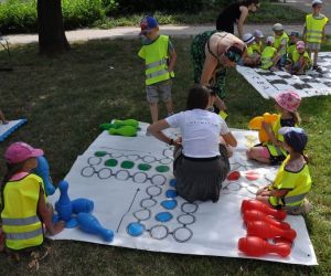 Animatorzy zadbali o dobrą rozrywkę dla wszystkich uczestników. Były zabawy i gry na matach edukacyjnych, a także quizy z nagrodami.