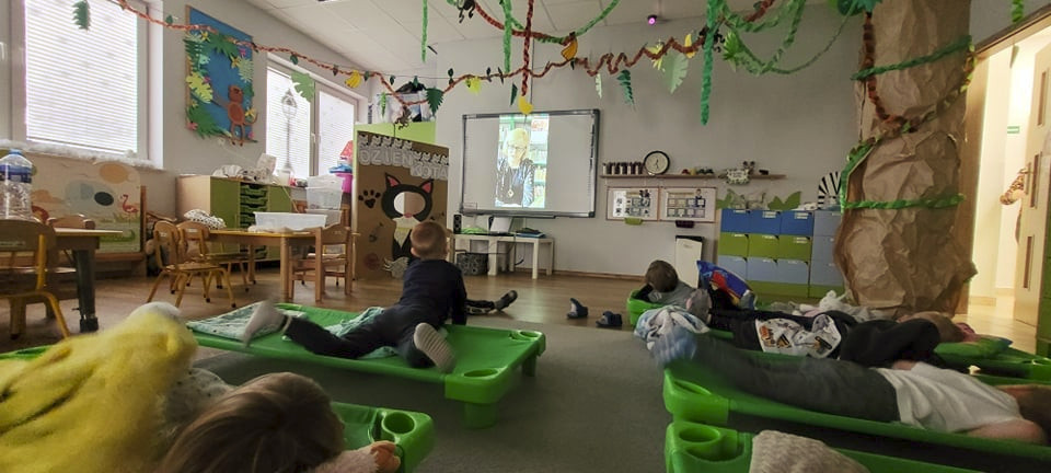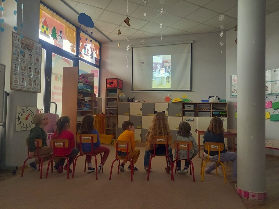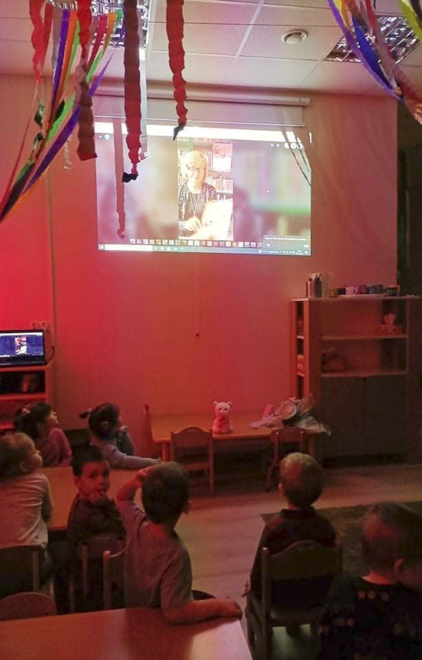 Bibliotekarka Barbara Wójcik przygotowała dla dzieci z Przedszkola Casper głośne czytanie. Ze względu na panującą pandemię, bibliotekarka nagrała czytanie, które zostało odtworzone dzieciom.