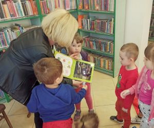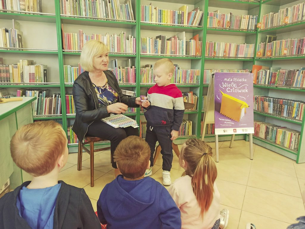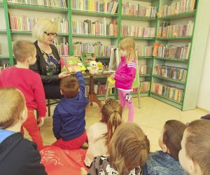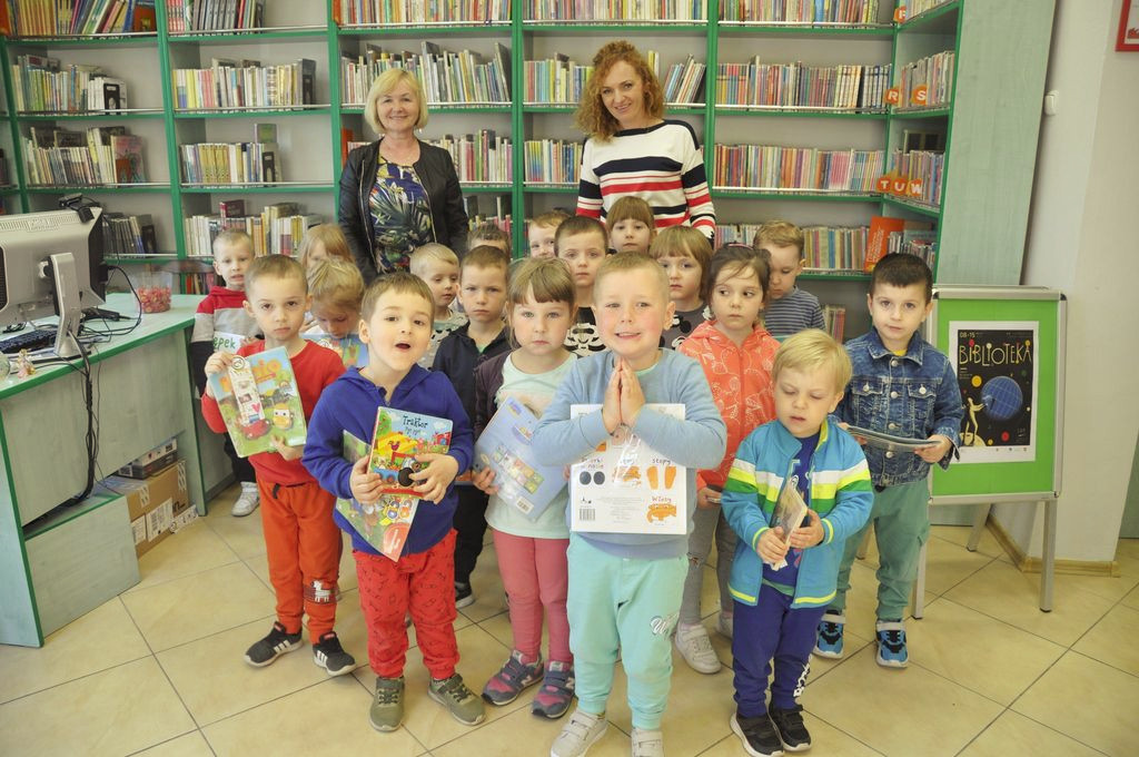 Przy okazji wizyty w bibliotece każde dziecko wypożyczyło sobie książkę a na zakończenie spotkania przedszkolaki otrzymały kolorowe zakładki do książek i słodką niespodziankę.
