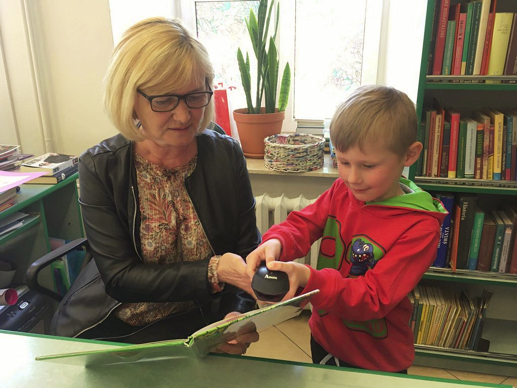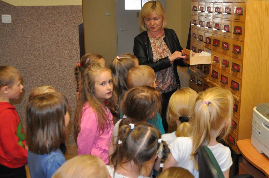 Przedszkolaki dowiedziały się też, jak wyglądała praca bibliotekarza przed komputeryzacją i jak wygląda teraz. Zobaczyły katalog z magicznymi szufladkami pełnymi kart, a następnie miały możliwość wypożyczyć sobie samodzielnie książkę używając czytnika kodów kreskowych.