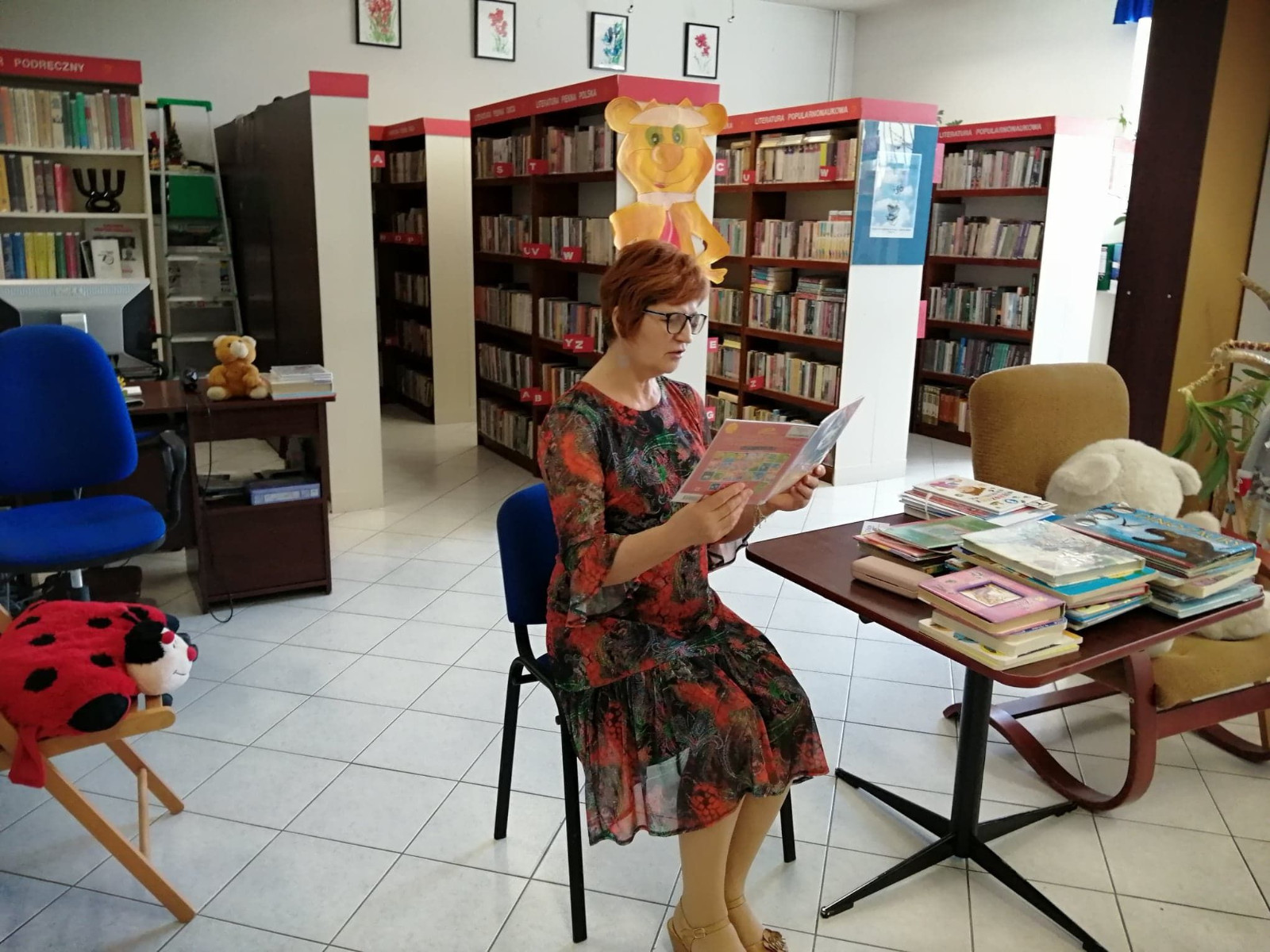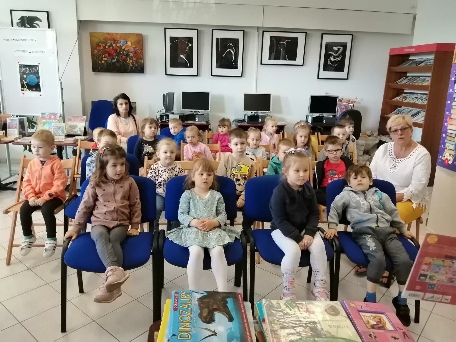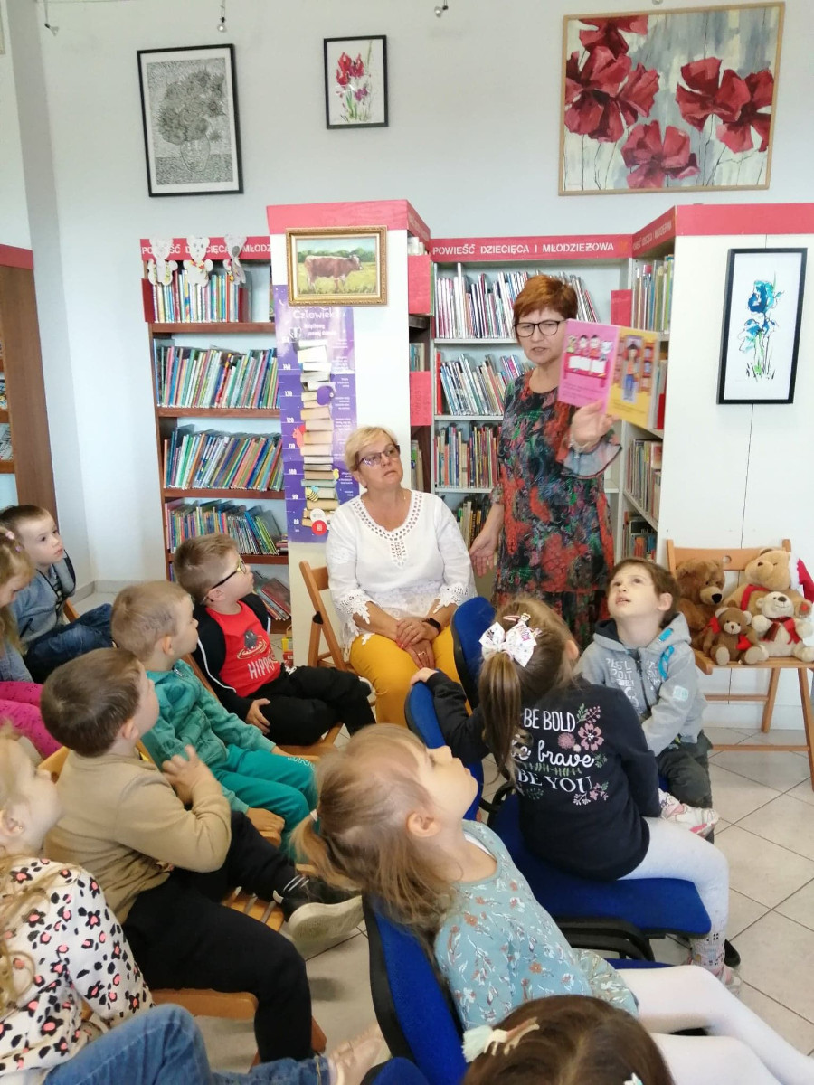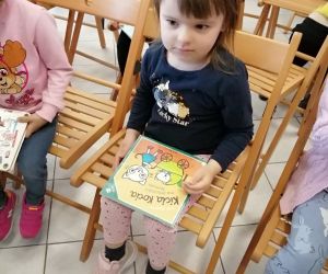 Dla większości dzieci, była to pierwsza wizyta wśród tylu książek. Na początku spotkania bibliotekarka przeczytała książkę Anity Głowińskiej pt.: „Kicia Kocia w bibliotece”. Kicia Kocia została przewodnikiem po bibliotece, dzieci dowiedziały się co można robić w bibliotece poza wypożyczaniem książek, kim jest autorka bajek, co to jest autograf, jak wygląda karta biblioteczna.