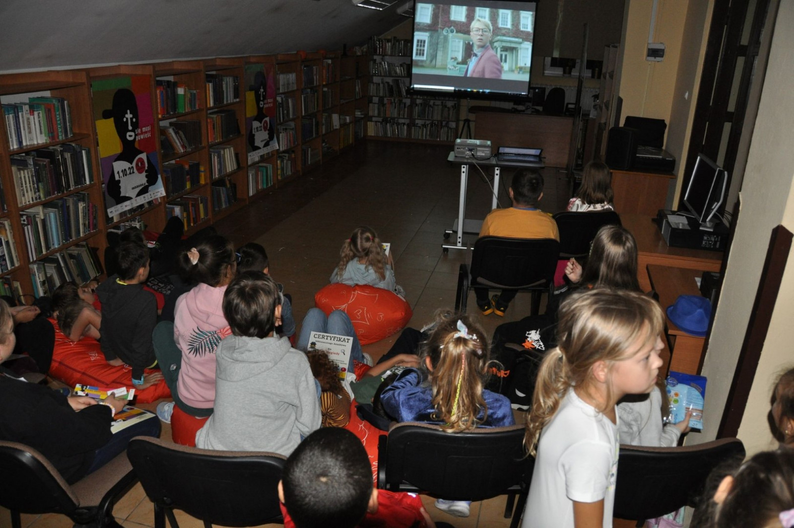 W Bibliotece było gwarno i bardzo wesoło. Dzieci miały okazję poznać tajniki pracy technika kryminalistyki, wysłuchać głośnego czytania, podążać tropem zagadek, rozszyfrować cenny kod i uwolnić książki. Było dużo kreatywnych zabaw oraz projekcja filmu "Biuro detektywistyczne Lassego i Mai".