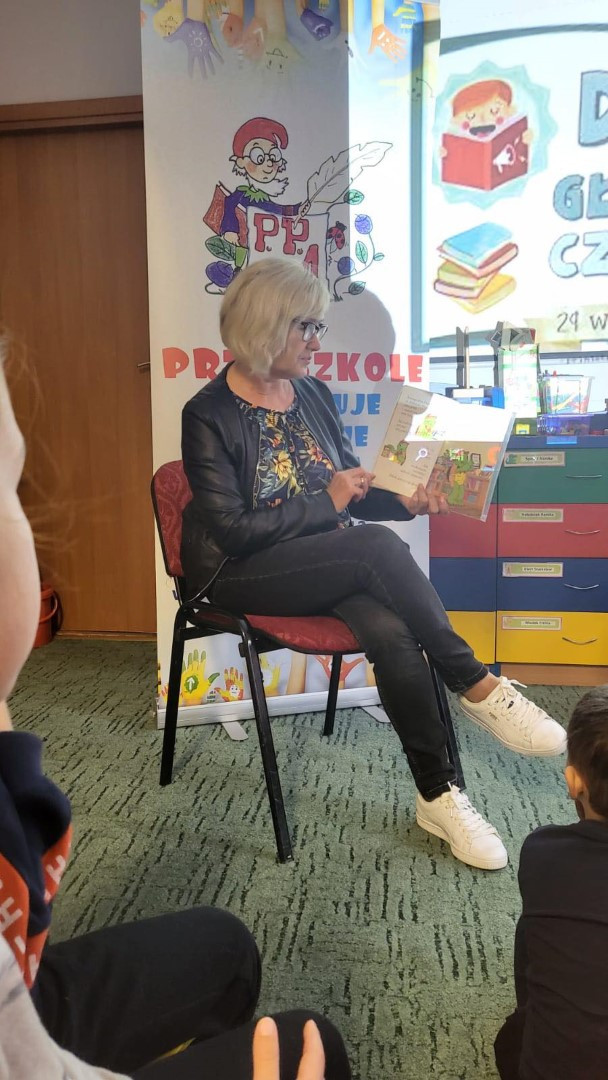 Tego dnia, bibliotekarka odwiedziła dzieci w przedszkolu. Krasnoludki wysłuchały książki pt. „Franklin i książka z biblioteki”.