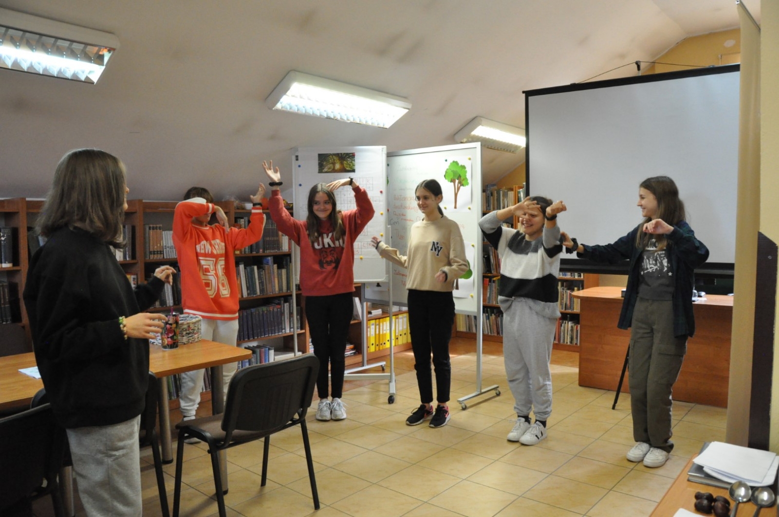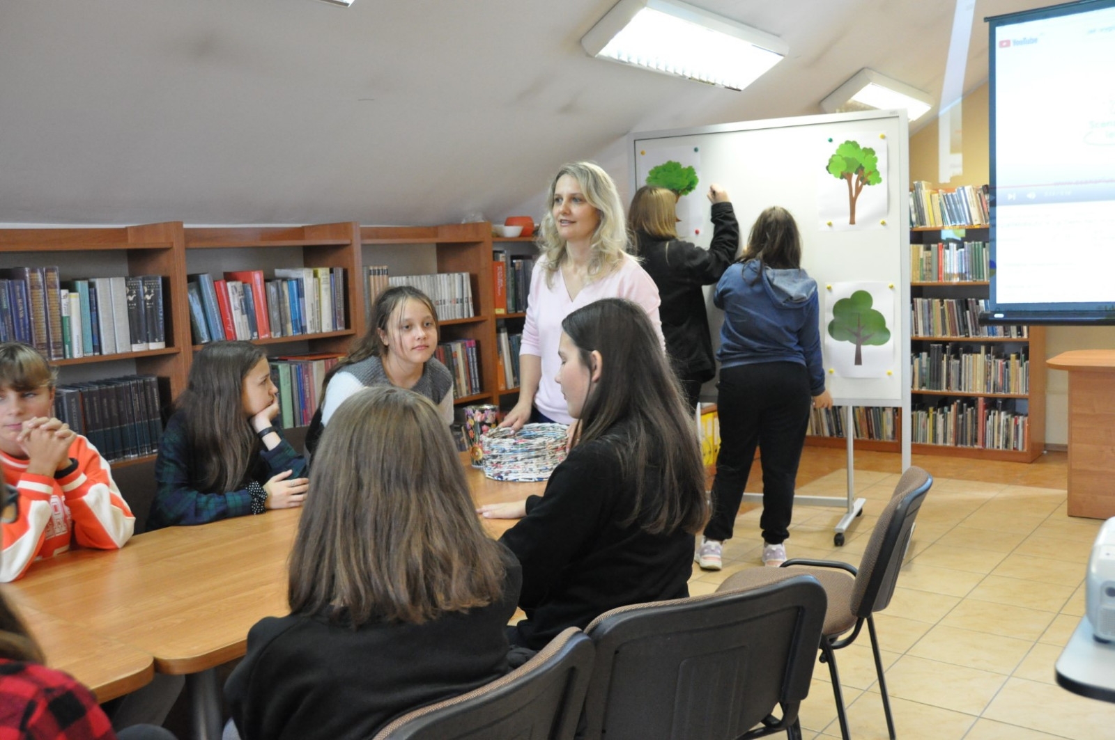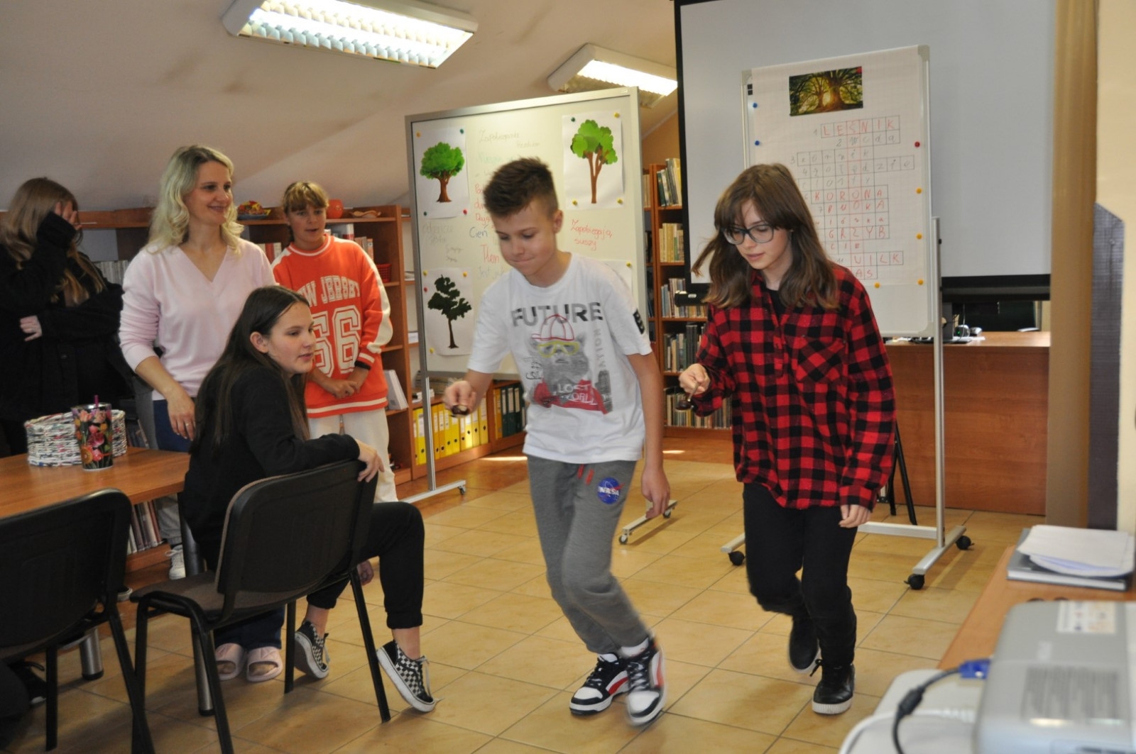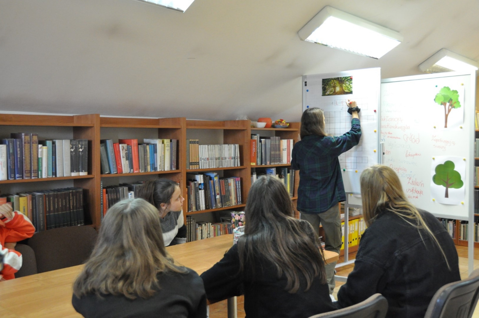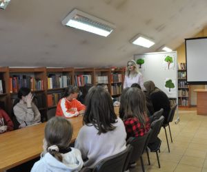 Z okazji Światowego Dnia Drzewa 11.10.2022 roku naszą Bibliotekę odwiedziła klasa 7 A ze Szkoły Podstawowej nr 2 w Łęcznej wraz z wychowawczynią. W trakcie spotkania młodzież wypowiadała się na temat pozytywnego wpływu drzew na nasze życie, rozwiązywała krzyżówkę oraz rebusy dotyczące tematów związanych z lasem. Uczniowie czytali fragmenty książki pt. „Drzewo życzeń” i uczestniczyli w zabawach ruchowych.