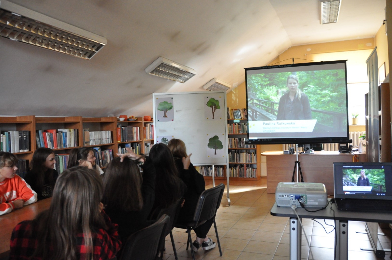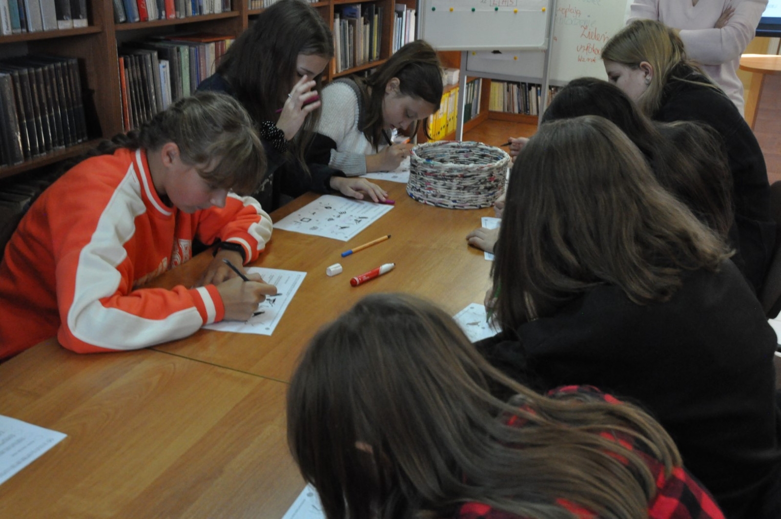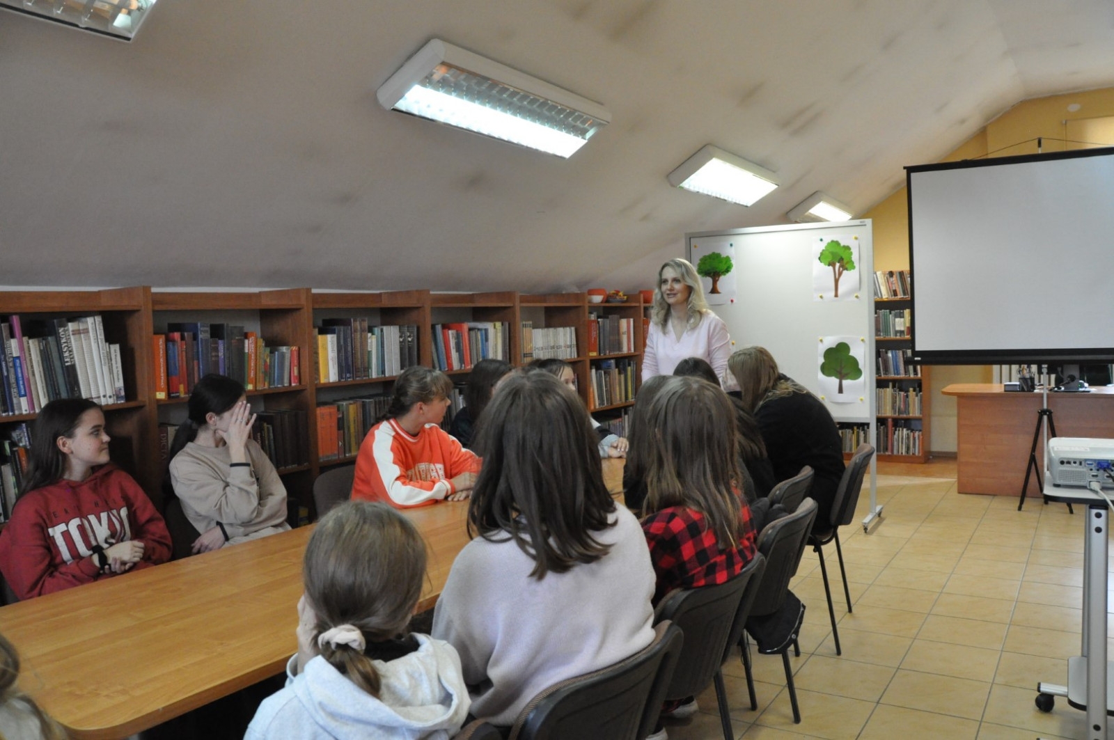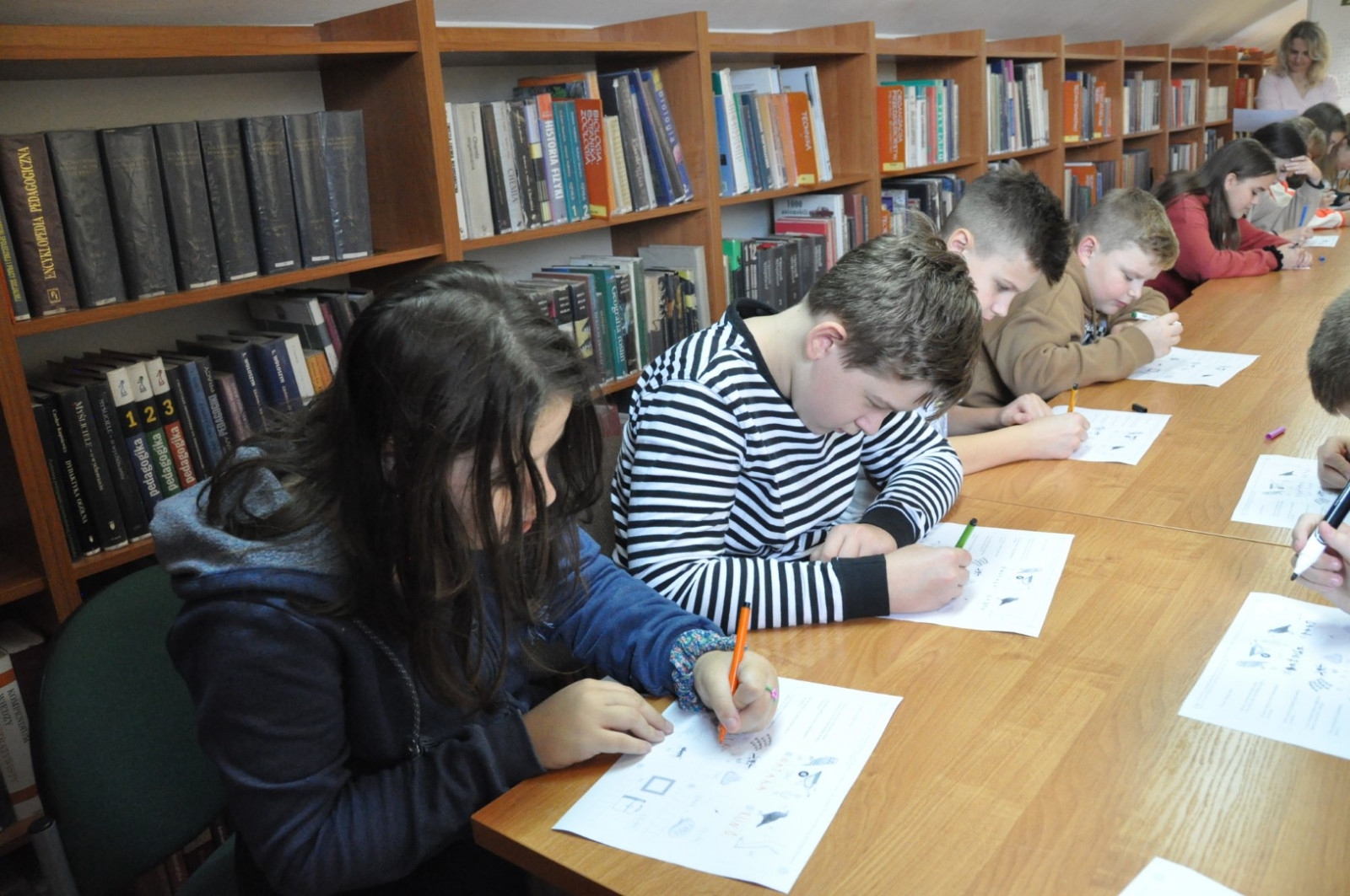Z okazji Światowego Dnia Drzewa 11.10.2022 roku naszą Bibliotekę odwiedziła klasa 7 A ze Szkoły Podstawowej nr 2 w Łęcznej wraz z wychowawczynią. W trakcie spotkania młodzież wypowiadała się na temat pozytywnego wpływu drzew na nasze życie, rozwiązywała krzyżówkę oraz rebusy dotyczące tematów związanych z lasem. Uczniowie czytali fragmenty książki pt. „Drzewo życzeń” i uczestniczyli w zabawach ruchowych.