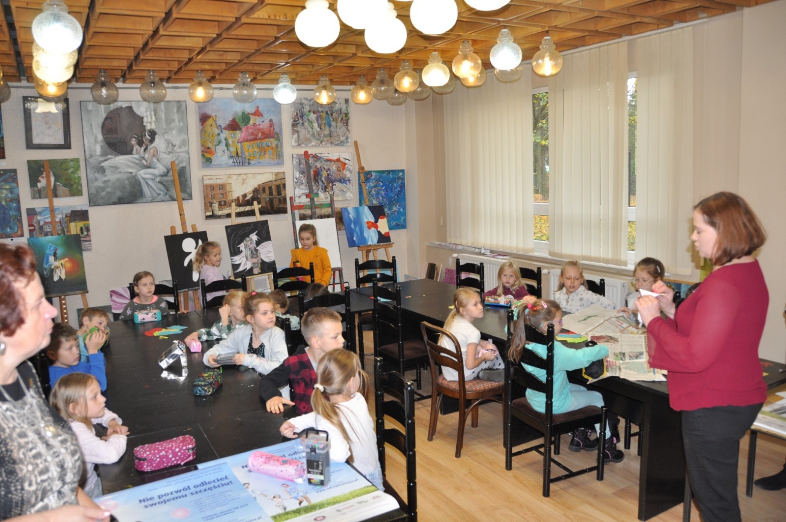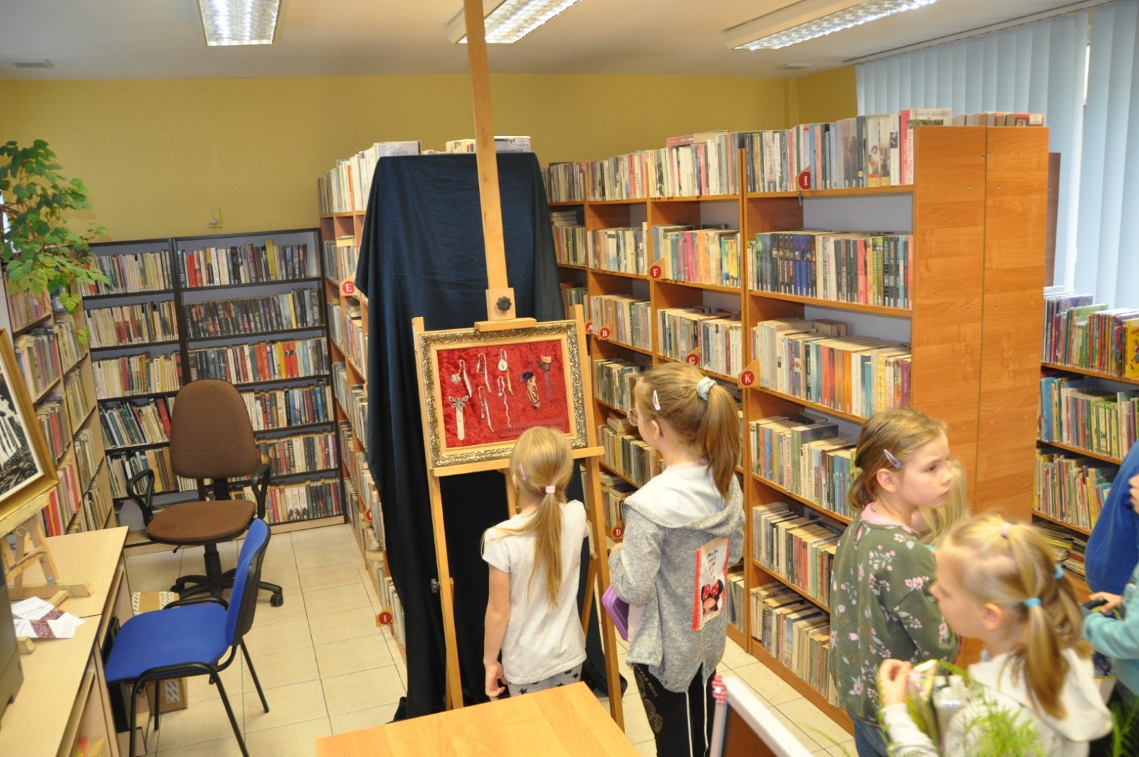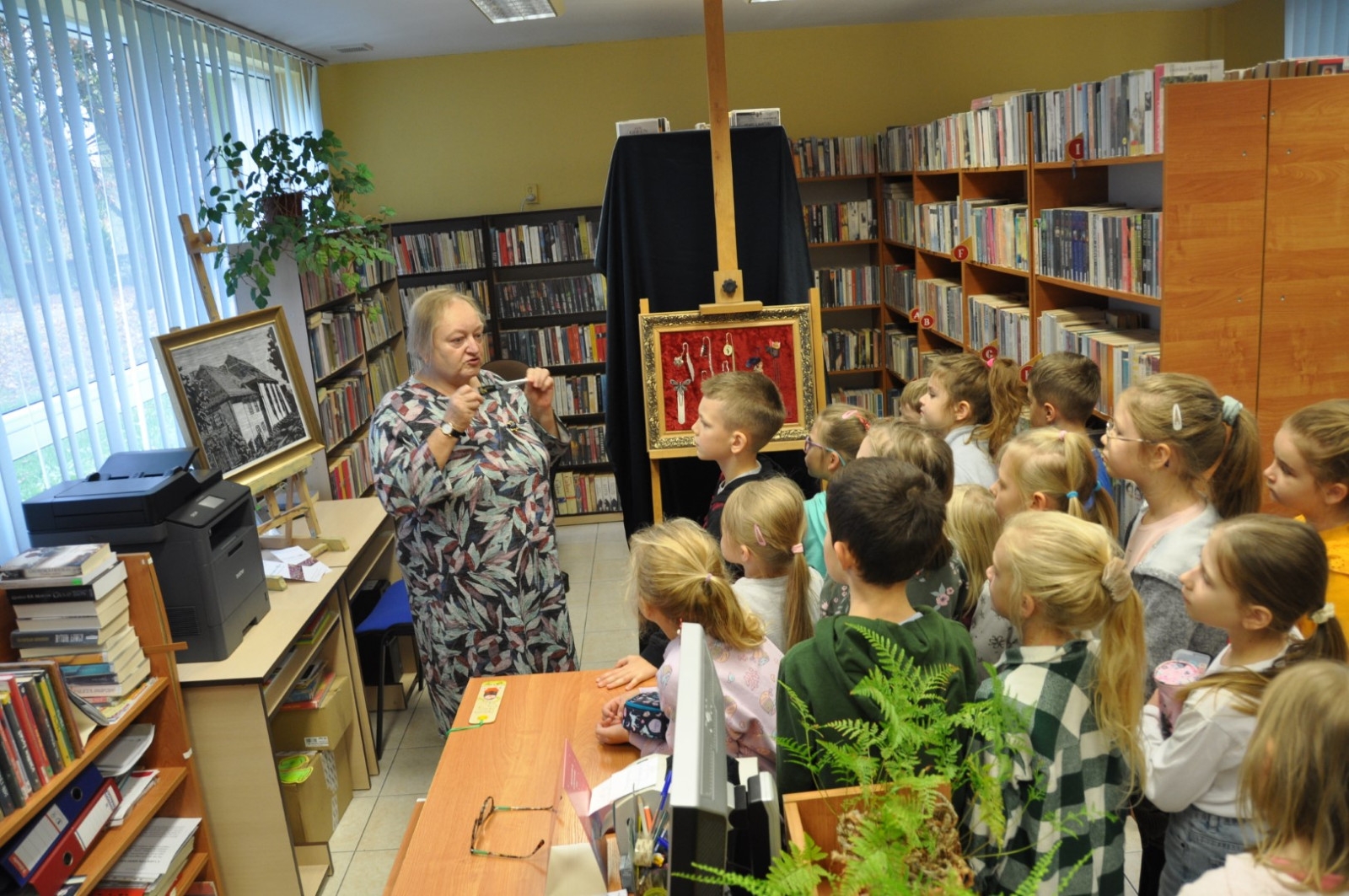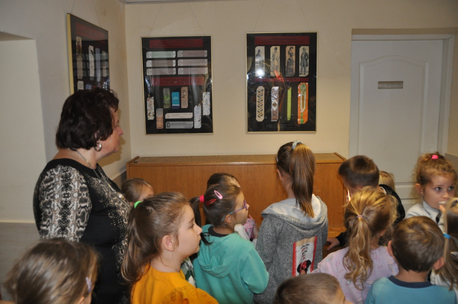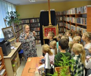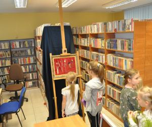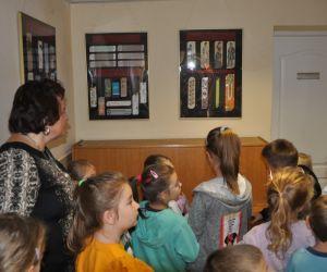 W dniu 26 października zwiedzająca wystawę klasa I „a” ze Szkoły Podstawowej nr 2 w Łęcznej miała przyjemność osobiście poznać kolekcjonerkę, posiadaczkę okazałego zbioru zakładek do książek. Pani Danusia opowiadając i oprowadzając po swojej „Krainie zakładek” zabrała uczniów w podróż do wielu ciekawych miejsc. Serdecznie dziękujemy naszej pasjonatce, która jest naszą Czytelniczką. Pierwszoklasiści mieli również okazje do wzięcia udziału w warsztatach plastycznych, podczas których wykonali swoje zakładki do książek. Powstały przepięknie ozdobione biedronki, motylki, pszczółki i gąsienice. Mamy nadzieje, że teraz żadna z bibliotecznych książek nie będzie miała zagiętych rogów.