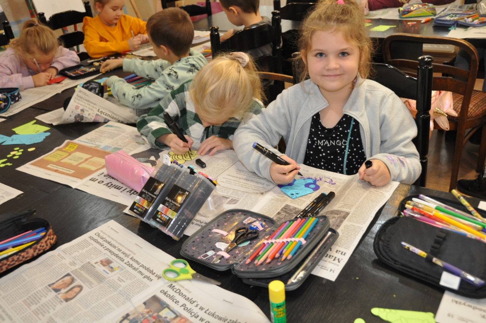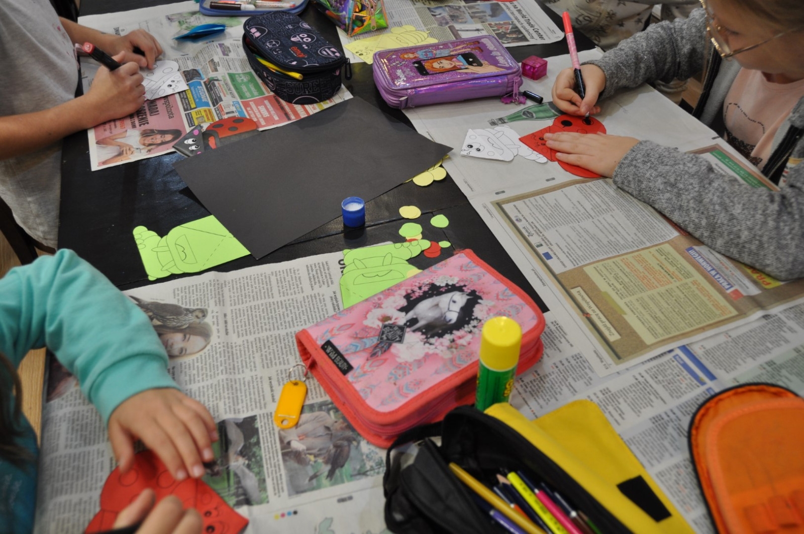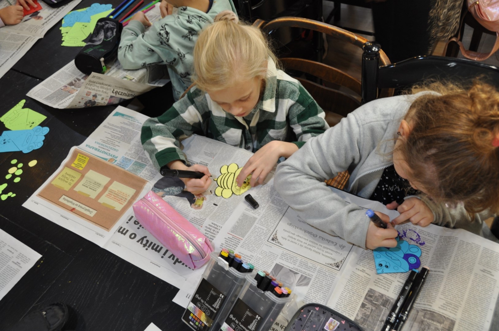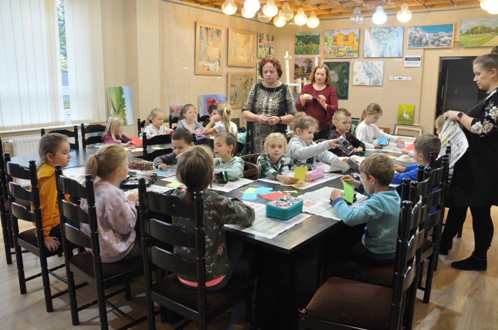 W dniu 26 października zwiedzająca wystawę klasa I „a” ze Szkoły Podstawowej nr 2 w Łęcznej miała przyjemność osobiście poznać kolekcjonerkę, posiadaczkę okazałego zbioru zakładek do książek. Pani Danusia opowiadając i oprowadzając po swojej „Krainie zakładek” zabrała uczniów w podróż do wielu ciekawych miejsc. Serdecznie dziękujemy naszej pasjonatce, która jest naszą Czytelniczką. Pierwszoklasiści mieli również okazje do wzięcia udziału w warsztatach plastycznych, podczas których wykonali swoje zakładki do książek. Powstały przepięknie ozdobione biedronki, motylki, pszczółki i gąsienice. Mamy nadzieje, że teraz żadna z bibliotecznych książek nie będzie miała zagiętych rogów.