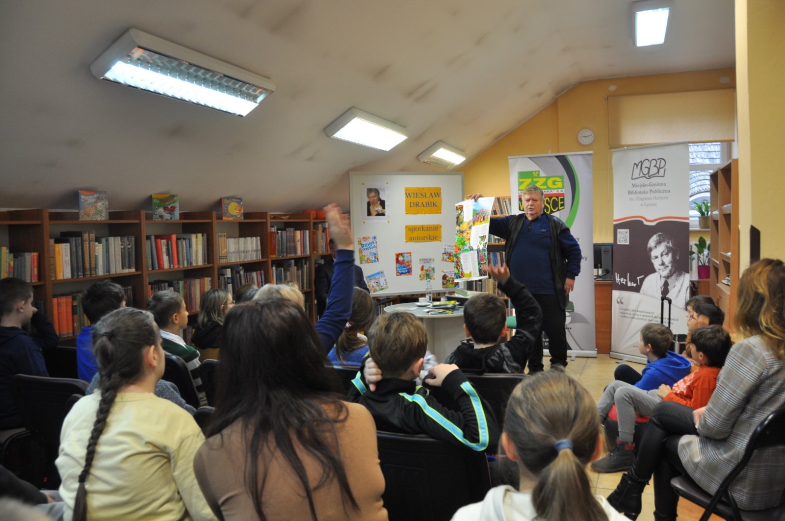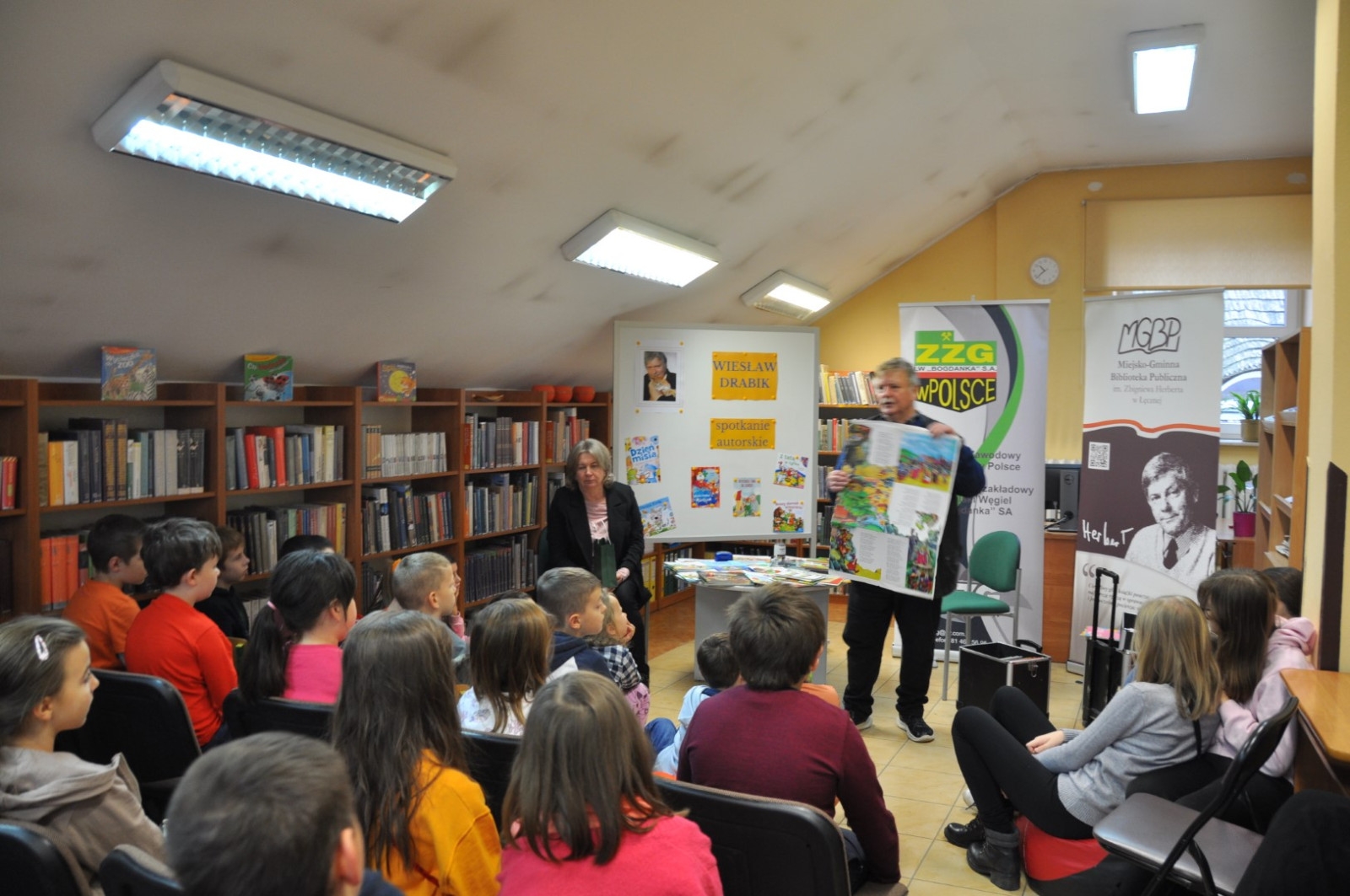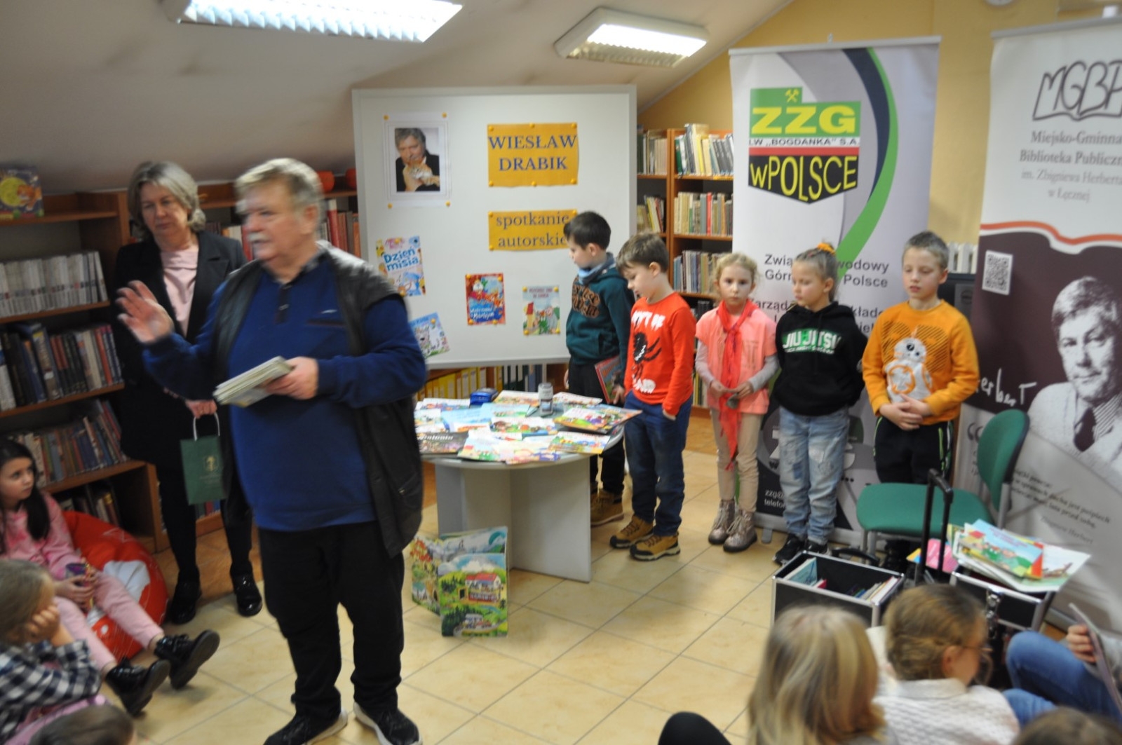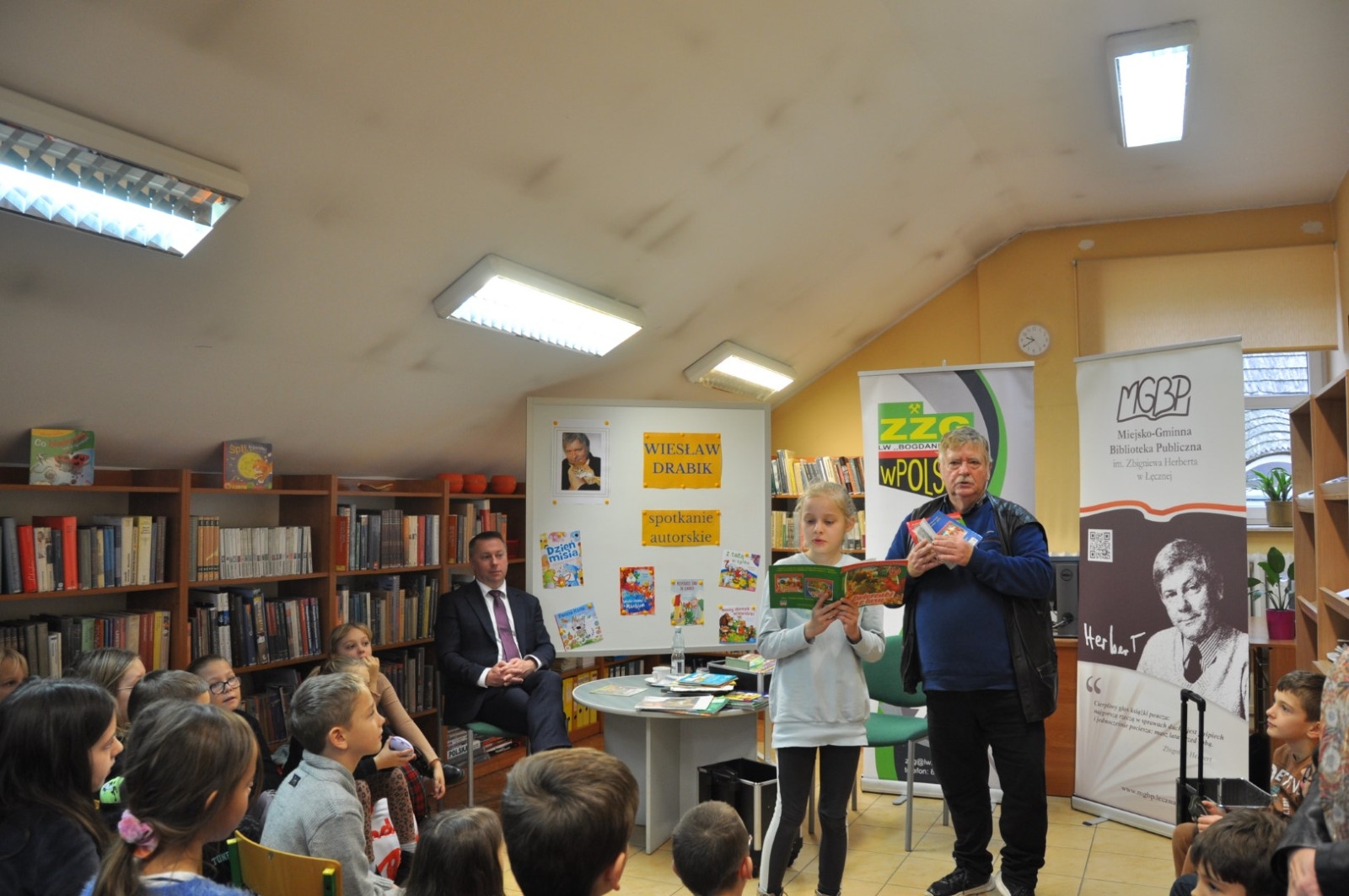 Podczas spotkania Leszek Włodarski Burmistrz Łęcznej przeczytał książeczkę autora pt. „Nowy domek wiewiórki”. Wiesław Drabik opowiedział jak rozpoczął przygodę z pisaniem, o czym był pierwszy wierszyk napisany dla córki, a następnie wprowadził w świat pięknie wydanych i napisanych książeczek. Czytał i opowiadał o swoich książkach np. z serii „Na pomoc!”, „Zwierzaczkowo” i o tych do pokolorowania. Każda z nich oprócz ważnego przesłania, uczącego najmłodszych jak należy zachować się w różnych sytuacjach, zawiera mnóstwo przyjaznych, zabawnych treści.