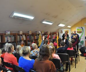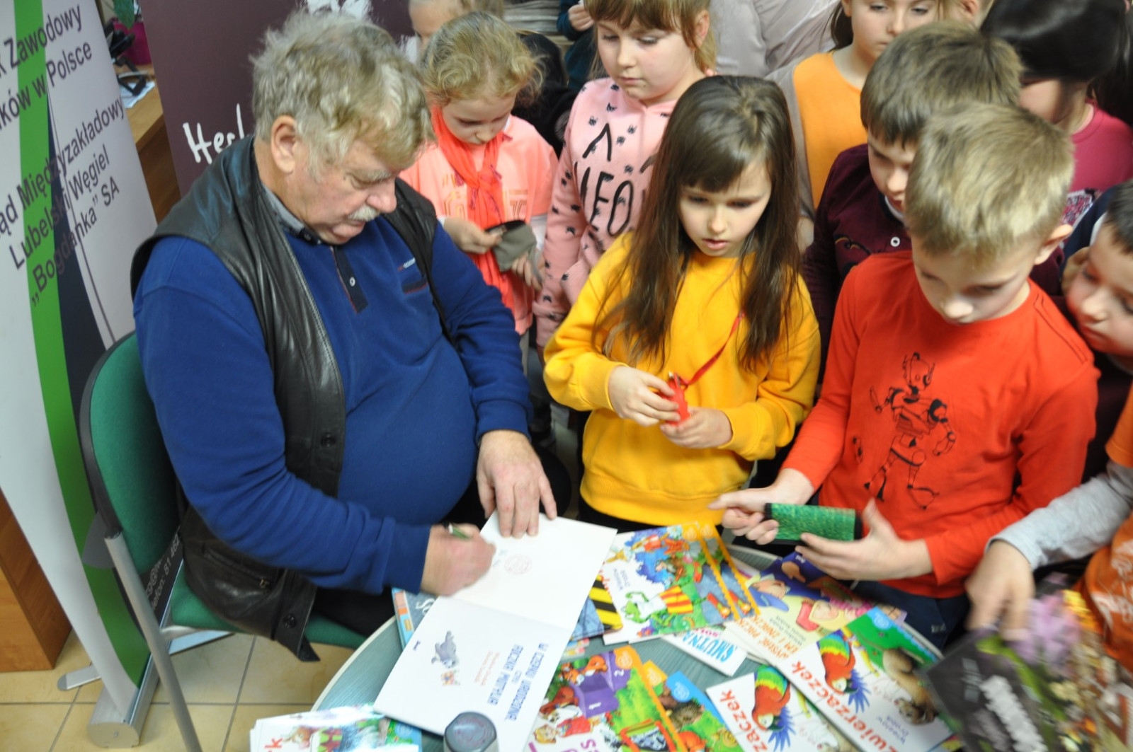 Dzieci żywo reagowały na czytane przez autora książki. Odpowiadały na zadawane przez pisarza pytania. Te najbardziej aktywne dostały naklejki i książeczki. Wszystkie dzieci mogły kupić książkę z autografem Wiesława Drabika.