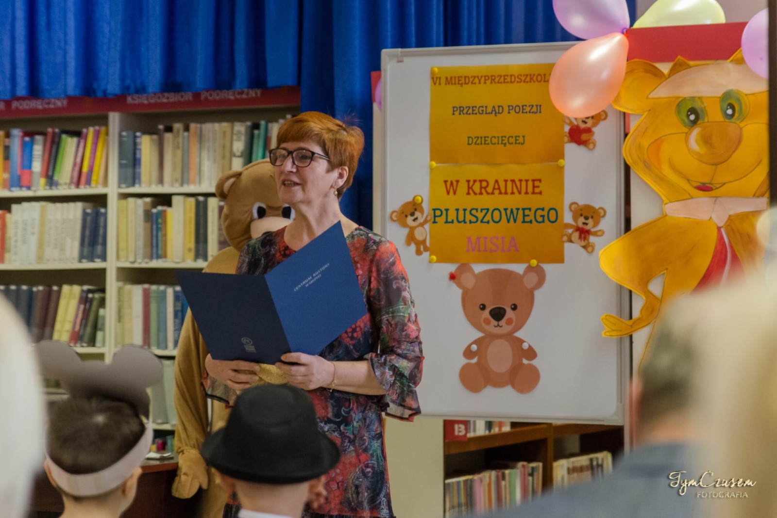 Z okazji święta Pluszowego Misia Miejsko- Gminna Biblioteka Publiczna im. Zbigniewa Herberta w Łęcznej, Filia nr 2 wraz z Przedszkolem Publicznym nr 3 w Łęcznej zorganizowała VI Międzyprzedszkolny Przegląd Poezji Dziecięcej „W Krainie Pluszowego Misia” pod honorowym patronatem Burmistrza Łęcznej – pana Leszka Włodarskiego.