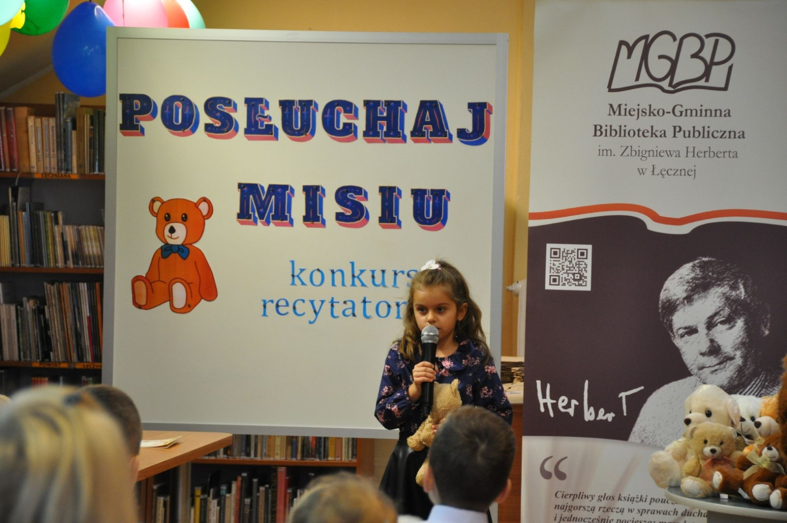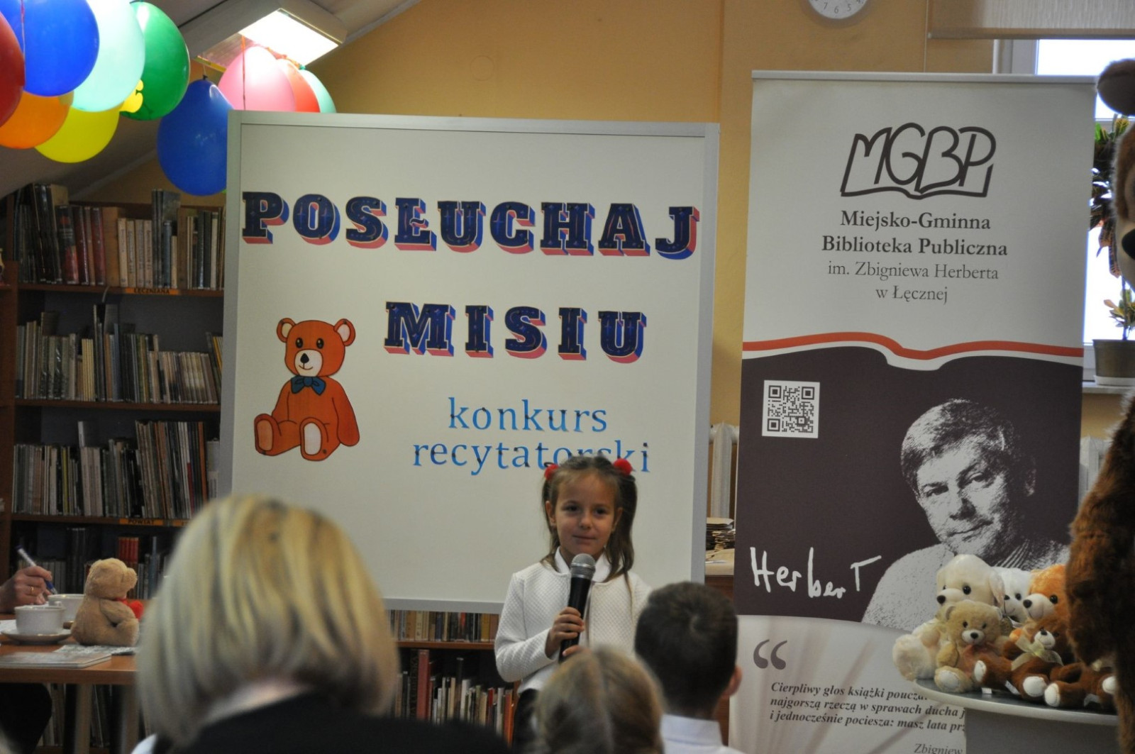 Do udziału w konkursie zaprosiliśmy dzieci 6-letnie ze szkół i przedszkoli – z miasta i gminy Łęczna. Celem konkursu było włączenie się w obchody Światowego Dnia Pluszowego Misia, popularyzacja i rozbudzenie u dzieci zainteresowań poezją, jak również prezentacja umiejętności małych recytatorów.