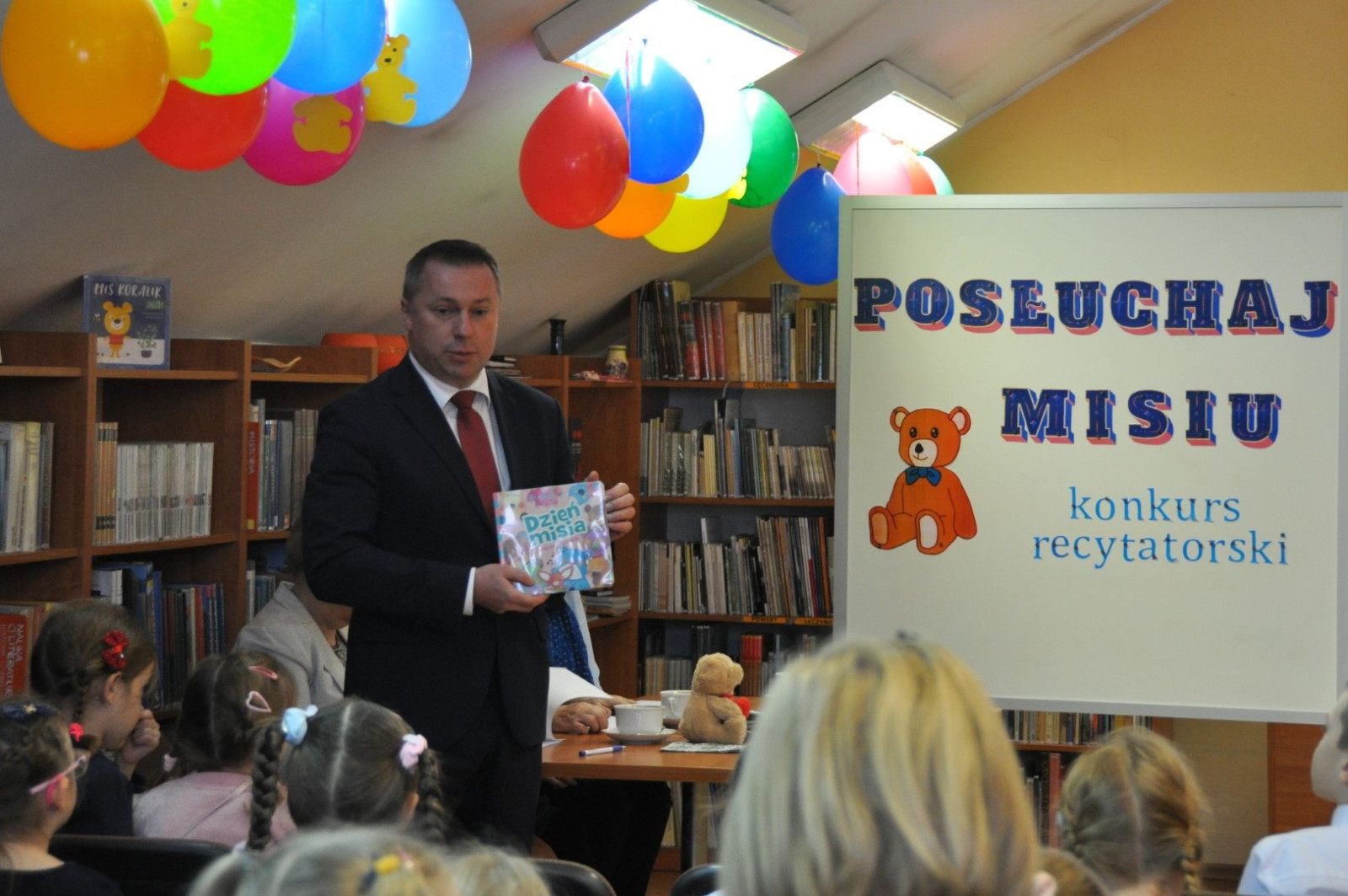 W tematykę misiowego święta wprowadził dzieci, przybyły na Misiowe urodziny, burmistrz Łęcznej – pan Leszek Włodarski, który przeczytał książkę autorstwa Wiesława Drabika pt. „Dzień Misia”.