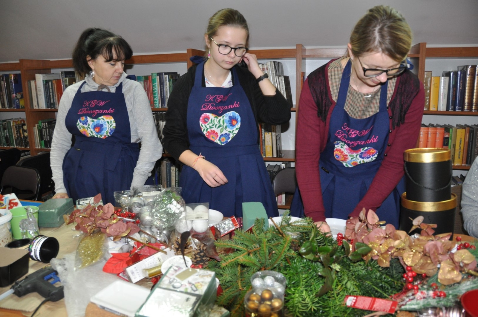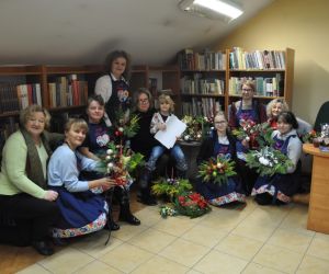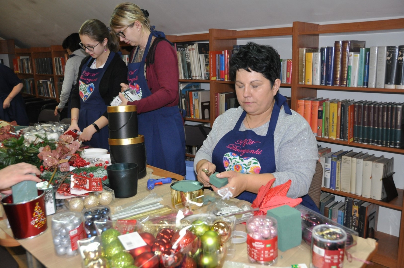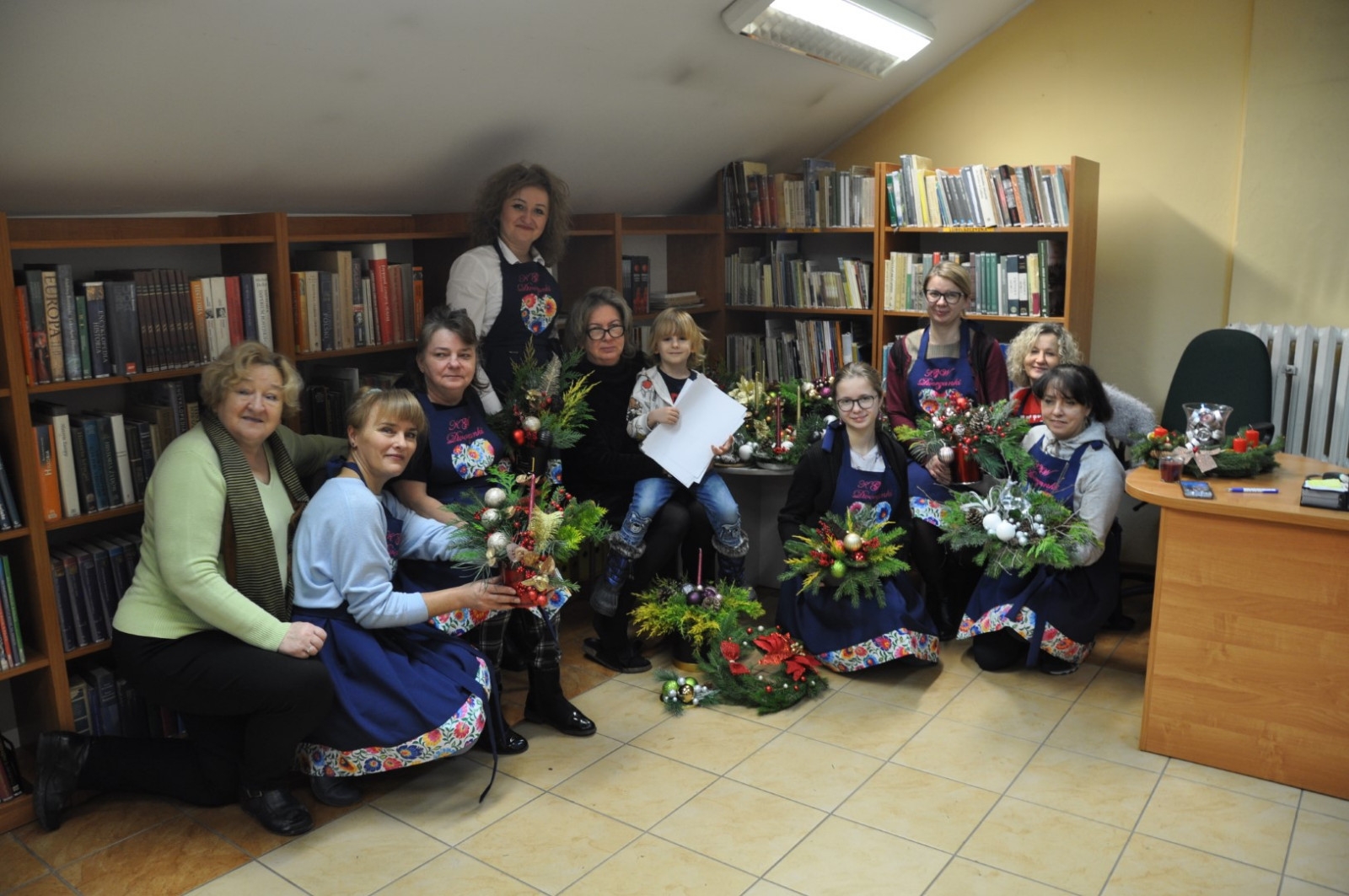 Koło Gospodyń Wiejskich "Dworzanki" spotkały się na warsztatach w w Bibliotece Głównej by zainspirować się "literaturą florystyczną" i stworzyć piękne, świąteczne ozdoby, które trafią na Łęczyński Jarmark Bożonarodzeniowy organizowany przez Urząd Miejski w Łęcznej oraz Centrum Kultury w Łęcznej.
