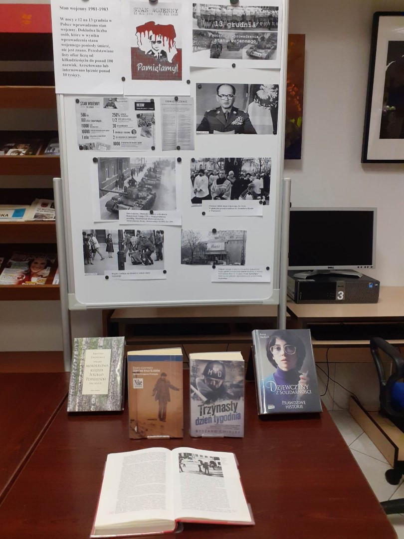 Z okazji 41. rocznicy wybuchu stanu wojennego w Polsce Filia nr 2 ul. Obrońców Pokoju 1 przygotowała wystawę książek i fotografii.