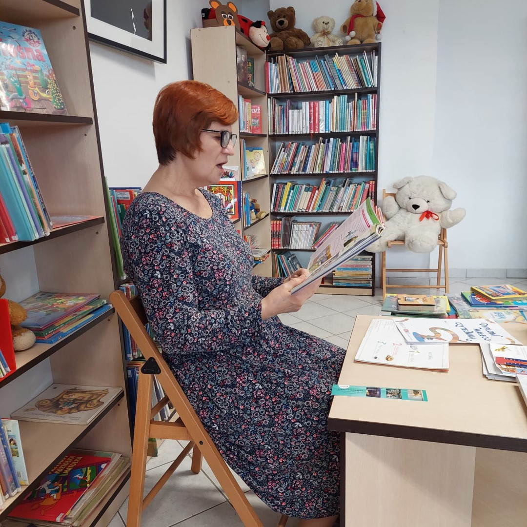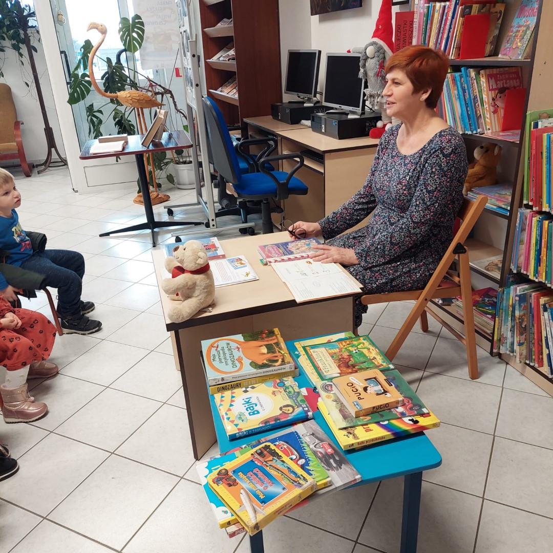 Bibliotekarka, Krystyna Skoczylas, na powitanie przeczytała dzieciom wiersz Władysława Bełzy pt.: „Dzieciom na nowy Rok”. Następnie powiedziała dzieciom co należy zrobić, by stać się czytelnikiem biblioteki; jak założyć kartę biblioteczną by móc wypożyczać książki.