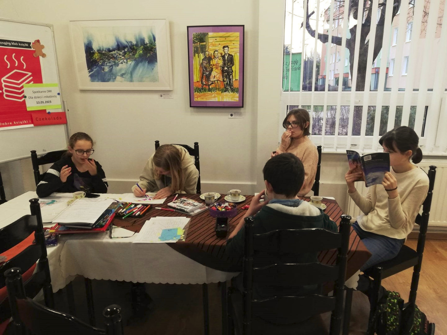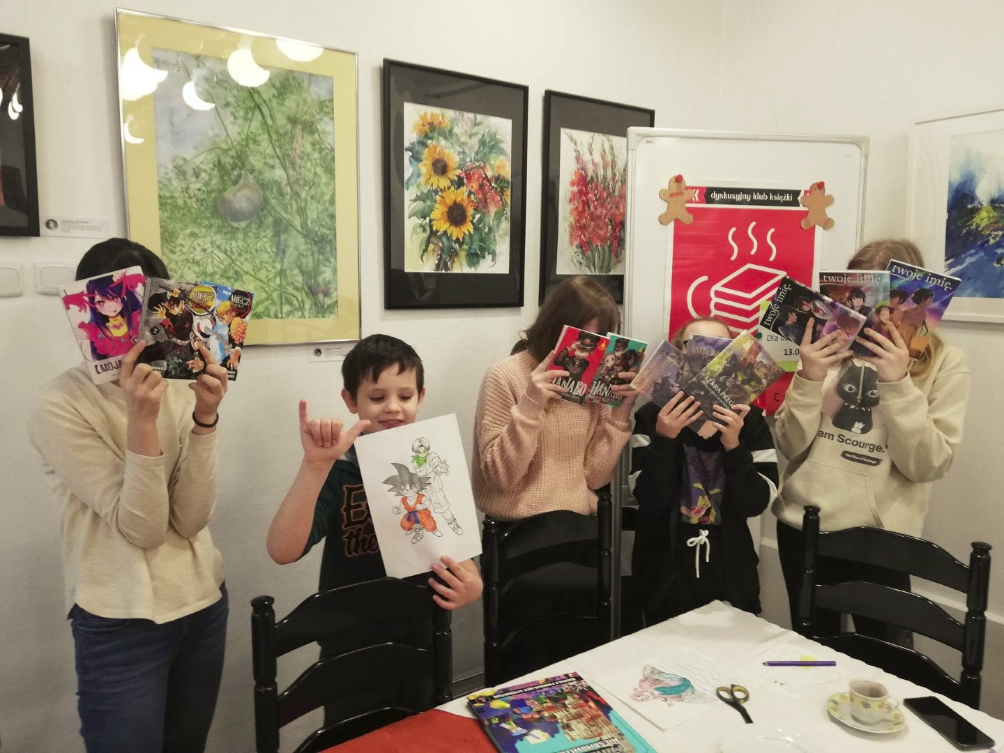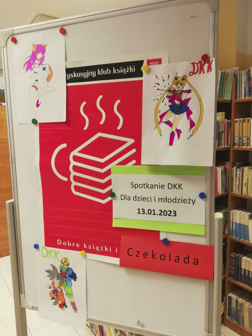 W piątek 13-tego w Filii nr 1 odbyło się pierwsze w tym roku spotkanie DKK dla dzieci i młodzieży. Tematem były mangi. Omawialiśmy zarówno te ze zbiorów biblioteki jak i ze zbiorów prywatnych. Okazuje się, że komiks japoński jest teraz bardzo popularny w tej grupie wiekowej naszych czytelników. Interesujące są zarówno same ilustracje, które oprócz kolorowych okładek są czarno-białe jak i zawarta w nich fabuła. Fascynują ich też sami bohaterowie, którzy niejednokrotnie przeistaczają się w inną postać i posiadają zarówno dobre jak i złe cechy charakteru. Sposób czytania mang też jest niekonwencjonalny, bo można je czytać od tyłu. A wszystkie te aspekty omawiane były przy filiżance gorącej czekoladyJ.