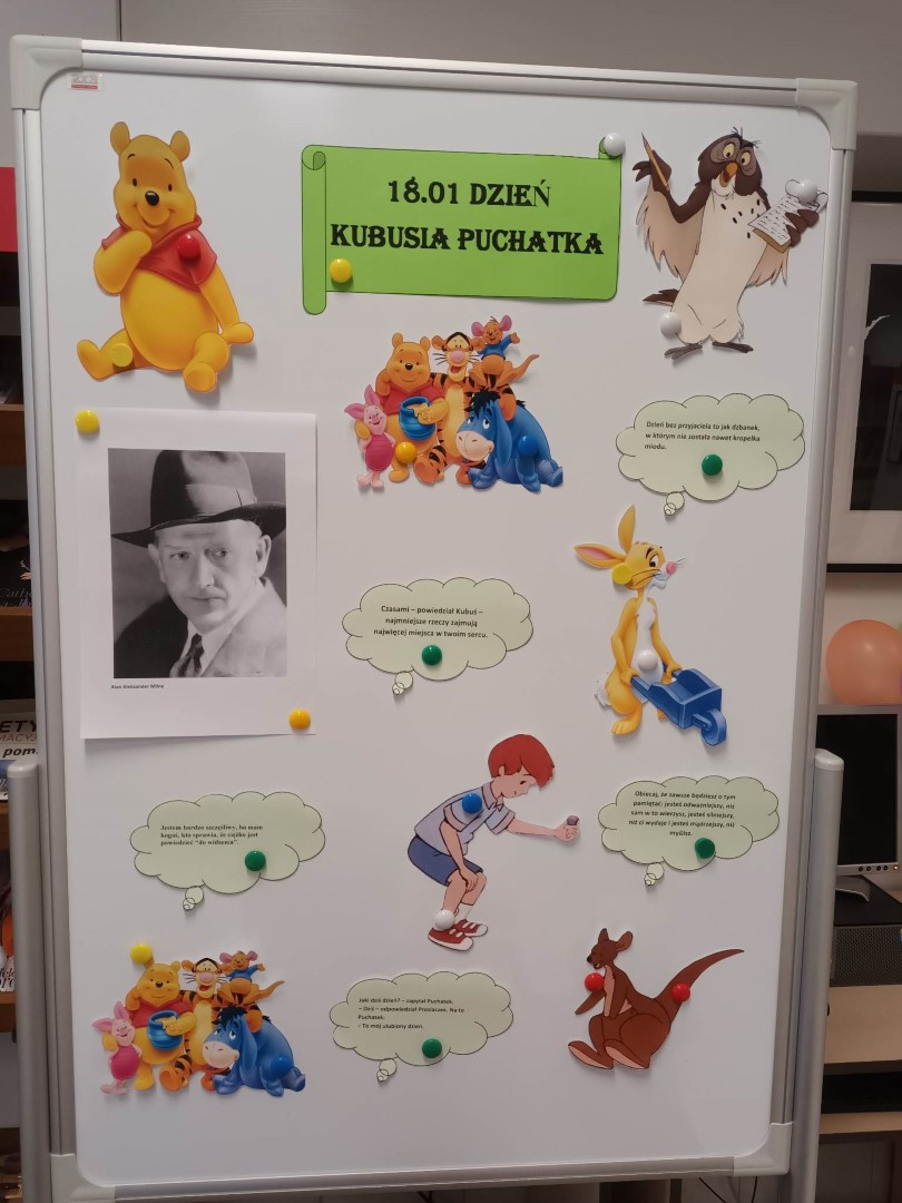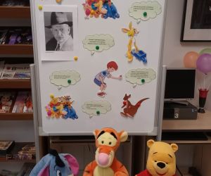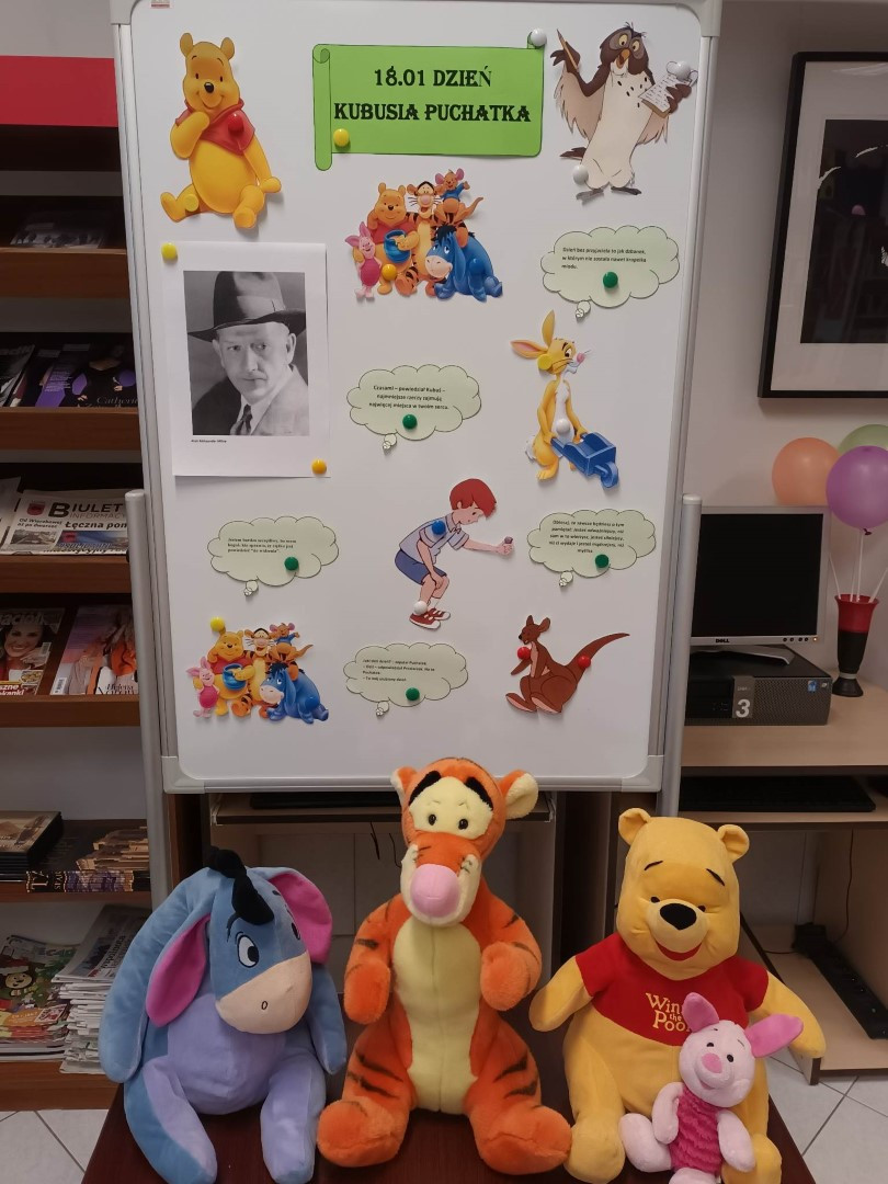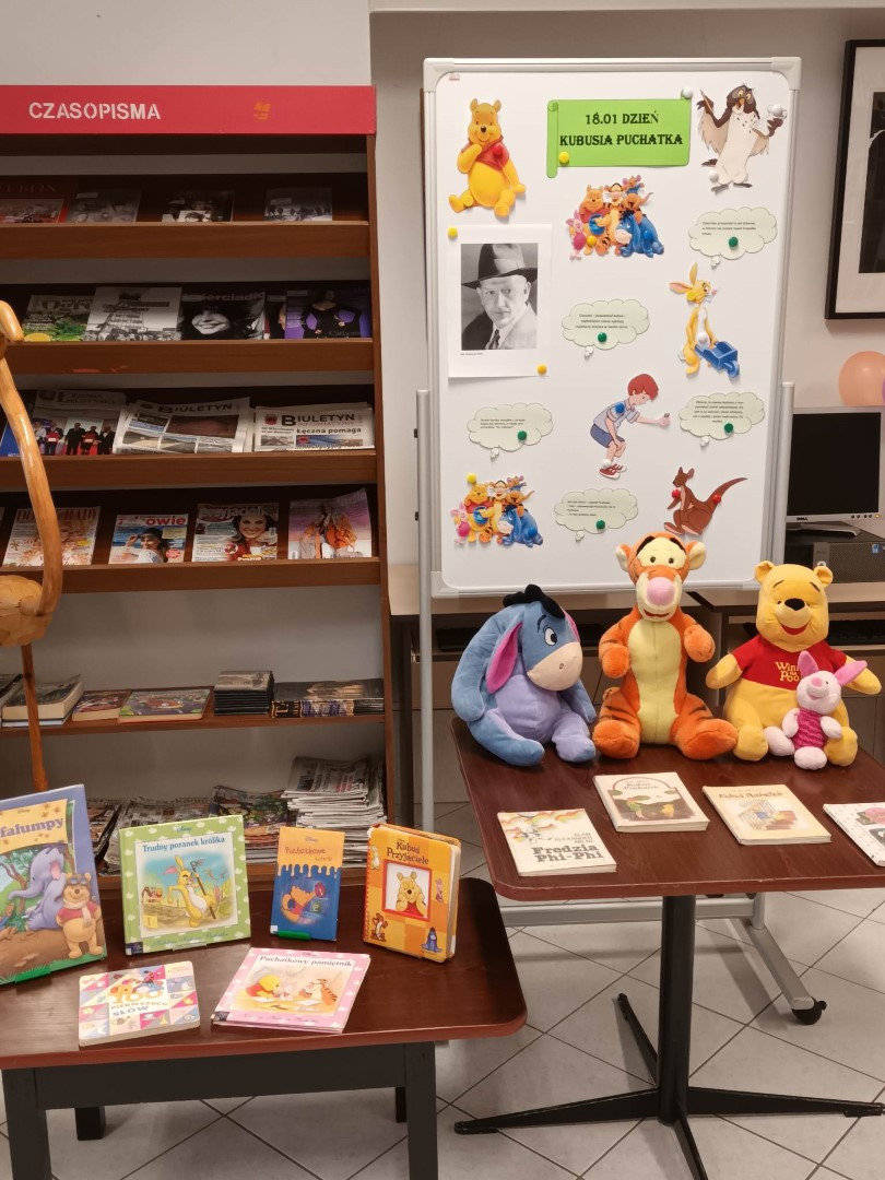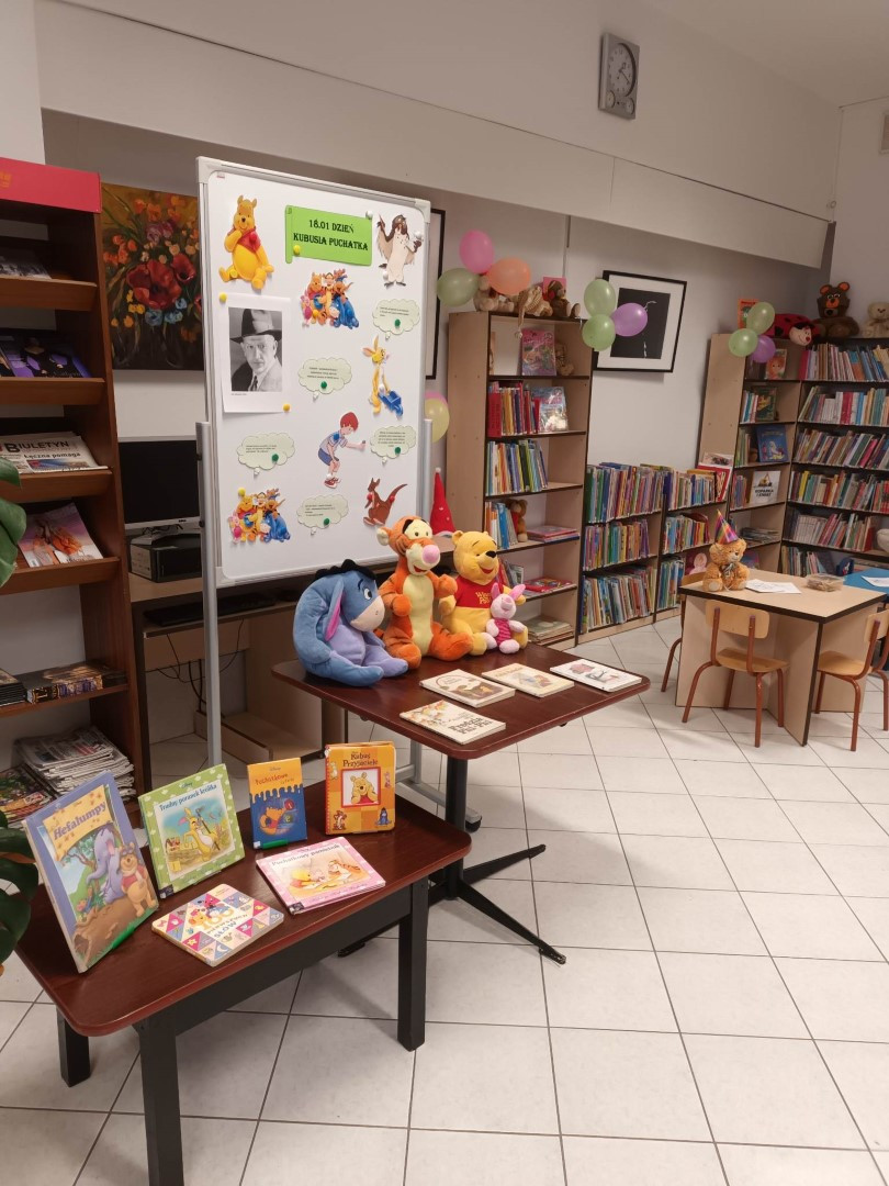 Z okazji Międzynarodowego Dnia Kubusia Puchatka 18 stycznia 2023 r. Filia nr 2 przy ul. Obrońców Pokoju 1 przygotowała tematyczną wystawę poświęconą Kubusiowi i jego przyjaciołom ze Stumilowego Lasu.