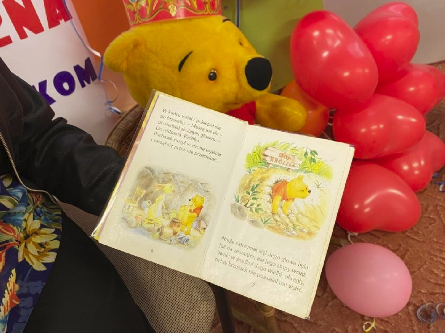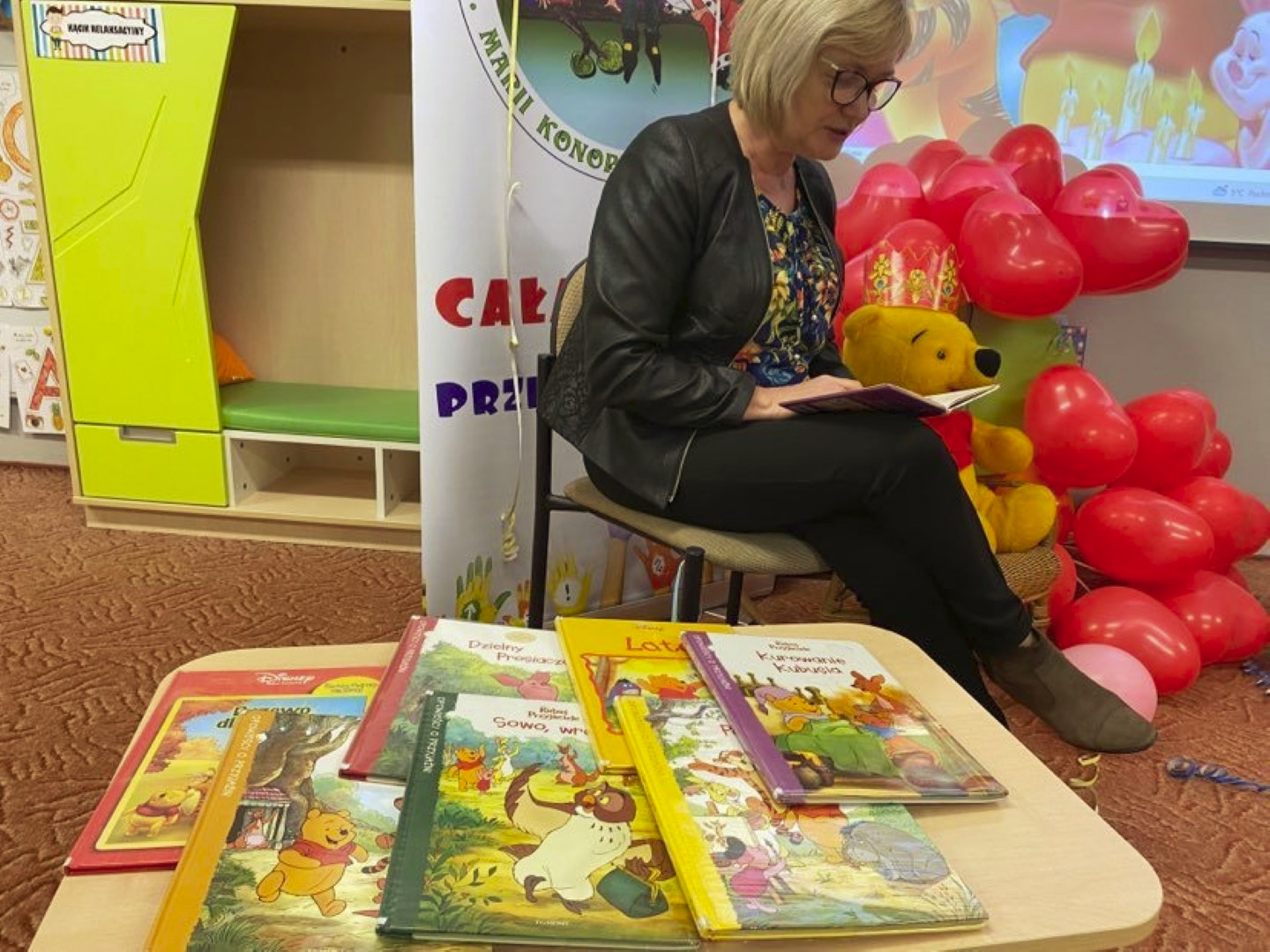 Było głośne czytanie książeczki "Za dużo miodu", zagadki, Puchatkowe kolorowanki oraz wypożyczanie Kubusiowych książek.