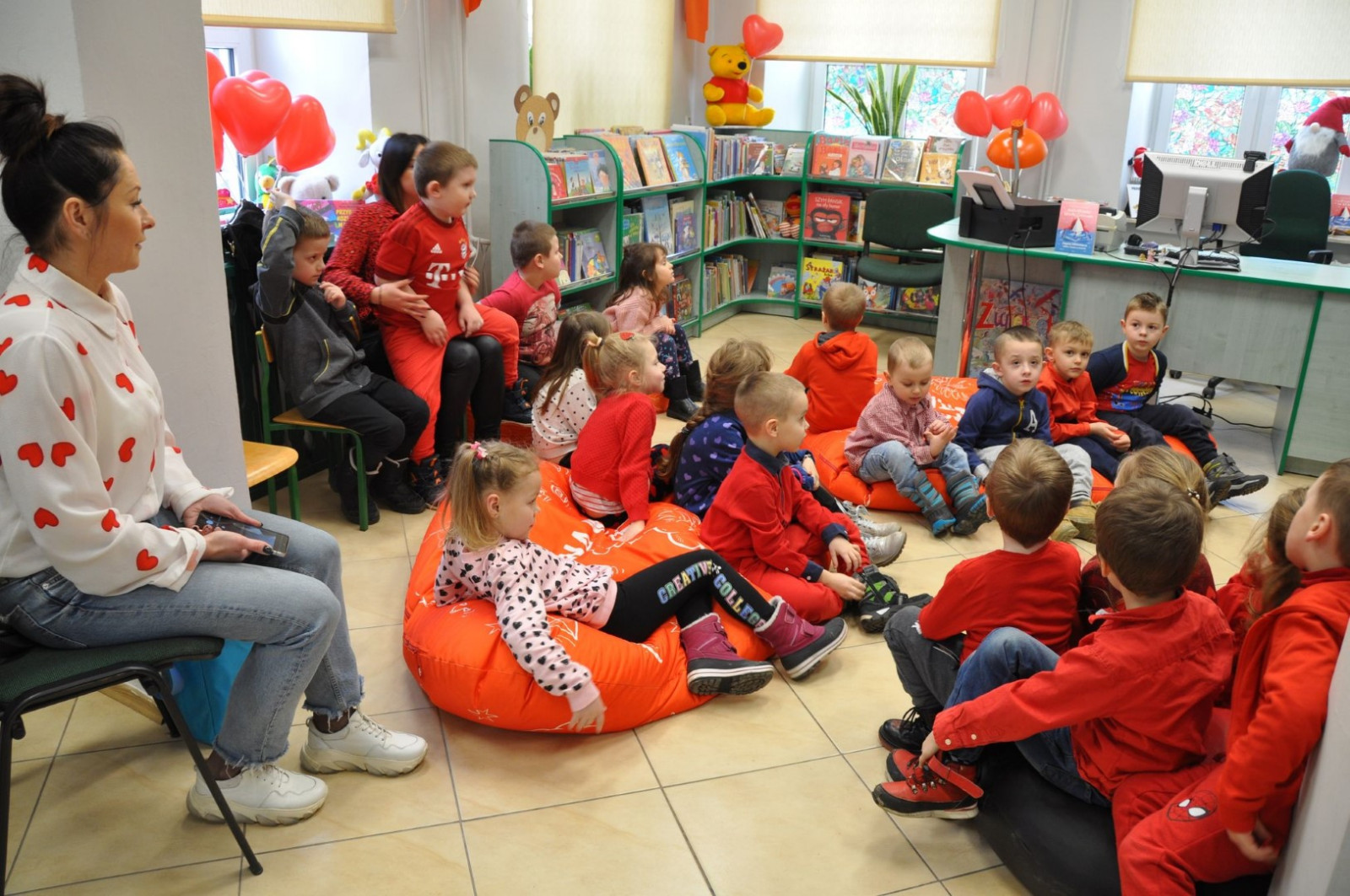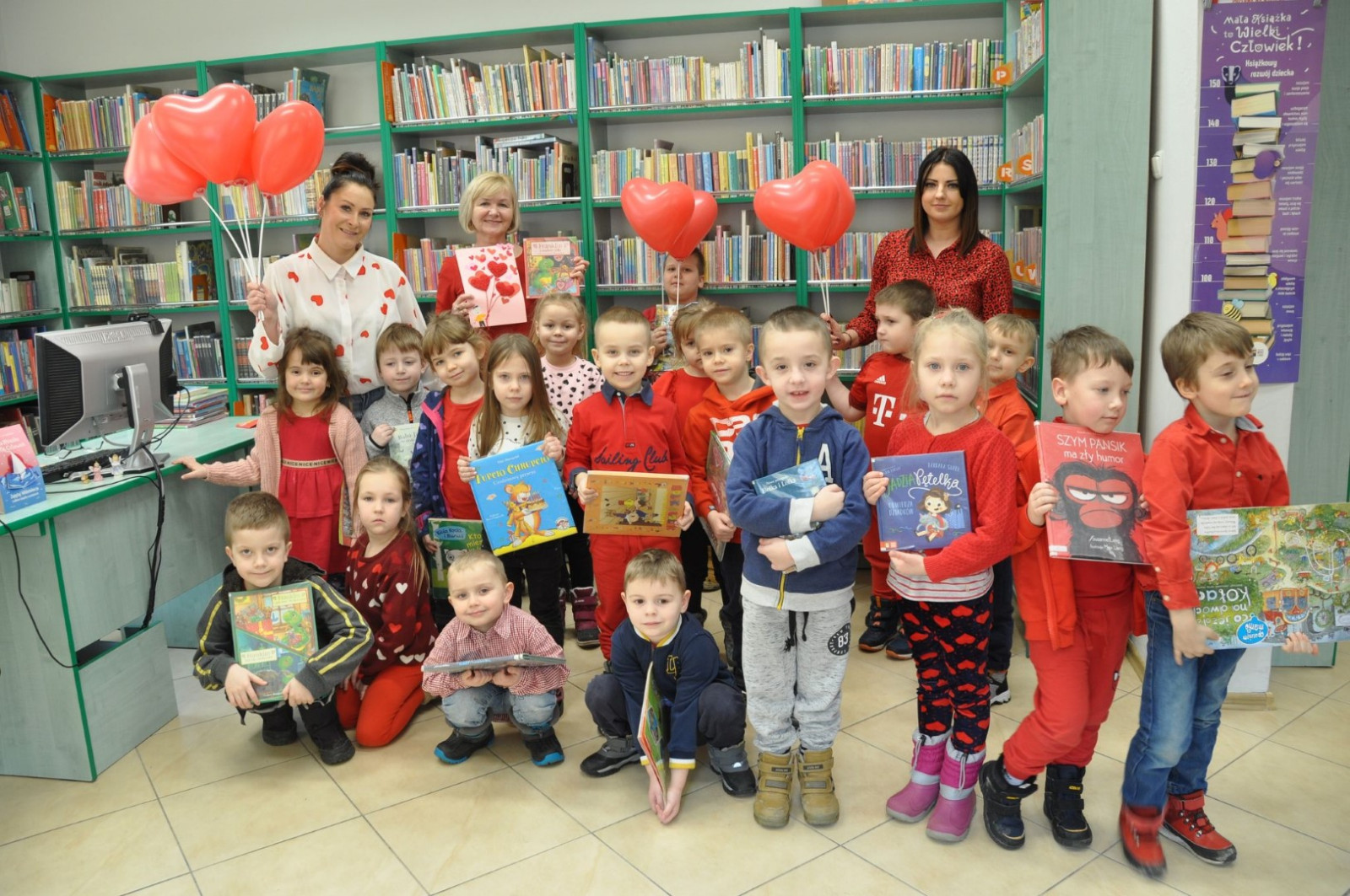 14 lutego obchodzimy Walentynki święto miłości, przyjaźni i wzajemnej życzliwości - idealny pretekst do wspólnej zabawy. Z tej okazji Oddział dla Dzieci przy ulicy Bożnicznej 21 odwiedziły przedszkolaki z grupy "Słoneczka" z Przedszkola nr 1 wraz z wychowawczyniami. Podczas walentynkowego spotkania w bibliotece , przedszkolaki słuchały piosenki "Walentynki dla chłopczyka i dziewczynki" oraz książki pt."Franklin i walentynki". Był czas na wypożyczanie książek oraz wspólne zdjęcia. Bibliotekarka podarowała przedszkolakom walentynkowe serca, które ozdobiły w przedszkolu. Dziękujemy za miłą wizytę w tym wyjątkowym dniu. Mamy nadzieję, że dzięki takim spotkaniom, dzieci pokochają książki.
