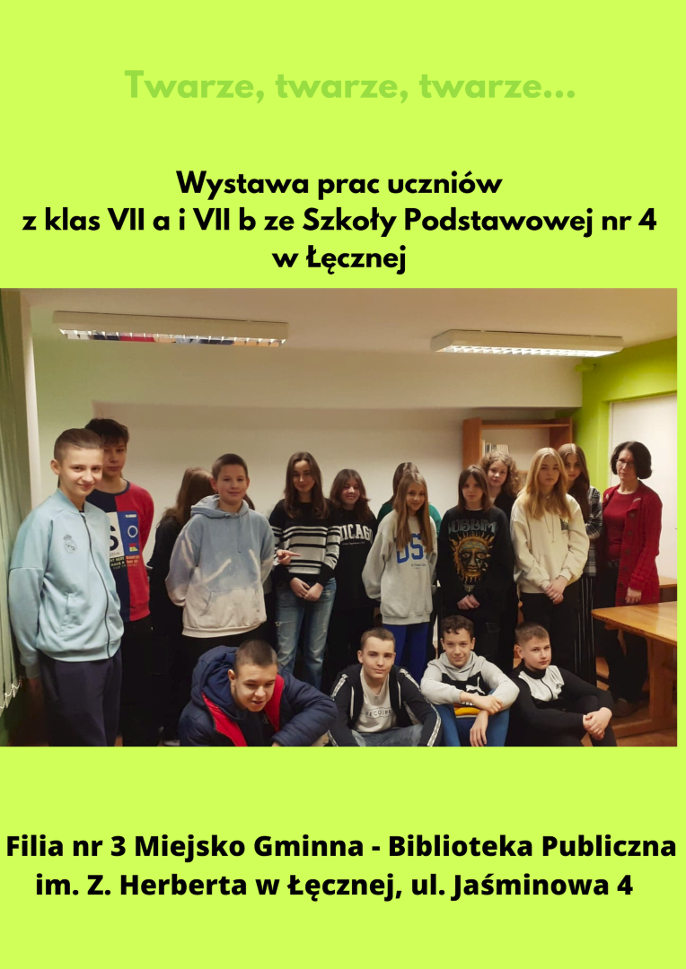 Twarze, twarze ,twarze… wystawa prac uczniów z klasy VII a i VII b ze Szkoły Podstawowej nr 4 w Łęcznej - w Filii nr 3