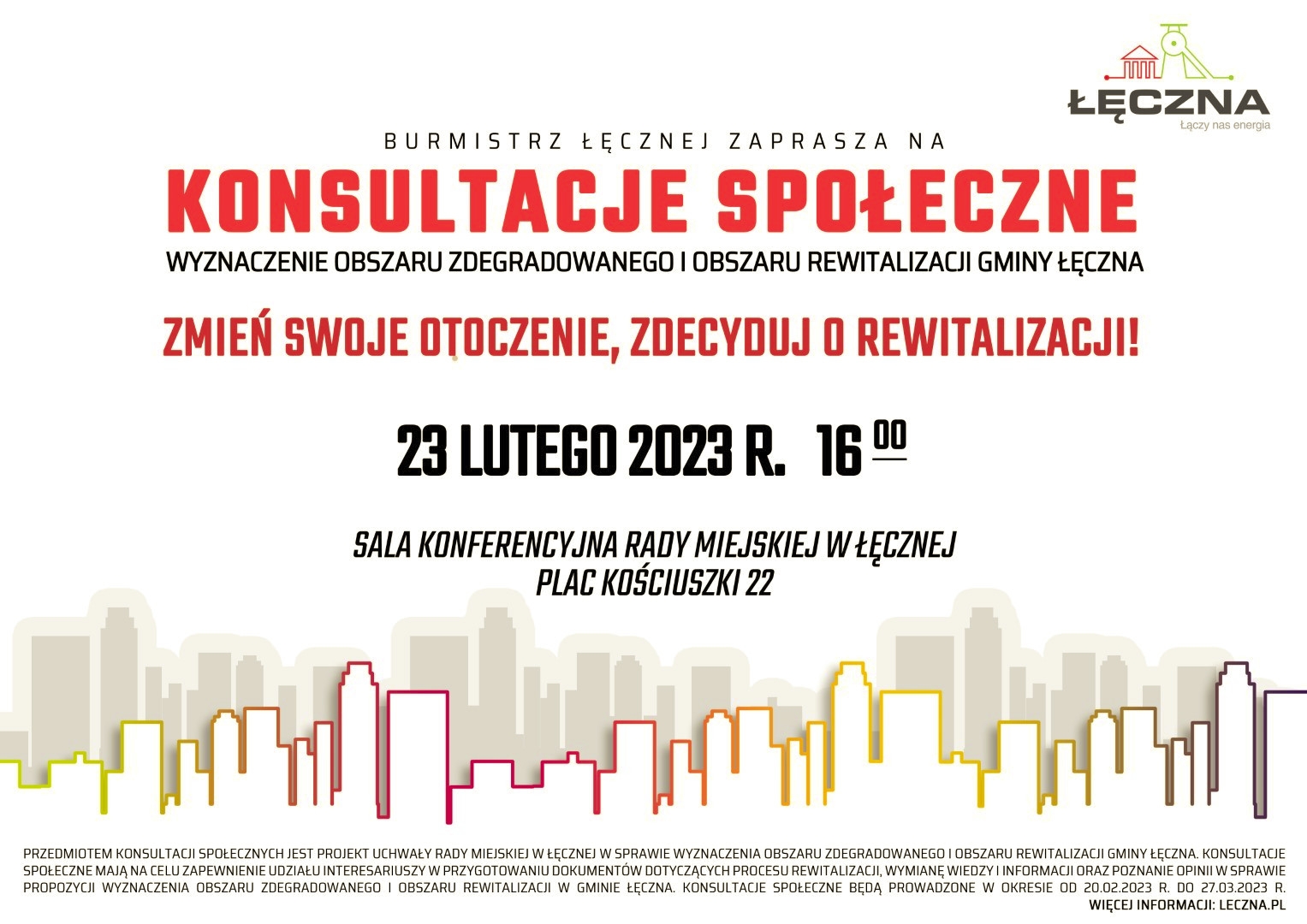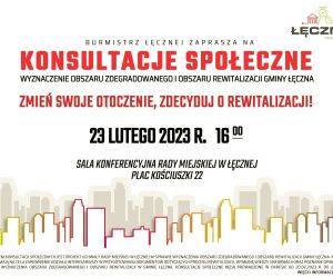 Szczególnie gorąco zachęcamy do udziału w spotkaniu konsultacyjnym, które odbędzie się 23 lutego w sali konferencyjnej Rady Miejskiej w Łęcznej przy Placu Kościuszki 22. Początek spotkania o godzinie 1600.