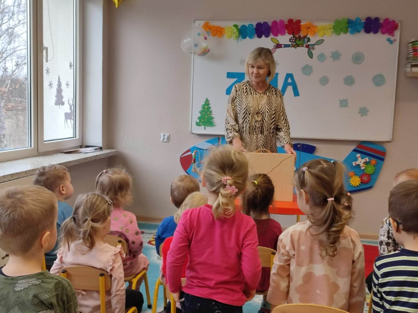 W dniu 13 lutego bibliotekarka z Oddziału dla Dzieci Biblioteki przy ul. Bożnicznej 21 odwiedziła dzieci z grupy Sówki i Biedronki w Żłobek Niepubliczny Mali Odkrywcy. Bibliotekarka przyszła z tajemniczą skrzynką, w której mieściły się Ilustrowane opowieści teatrzyku Kamishibai.