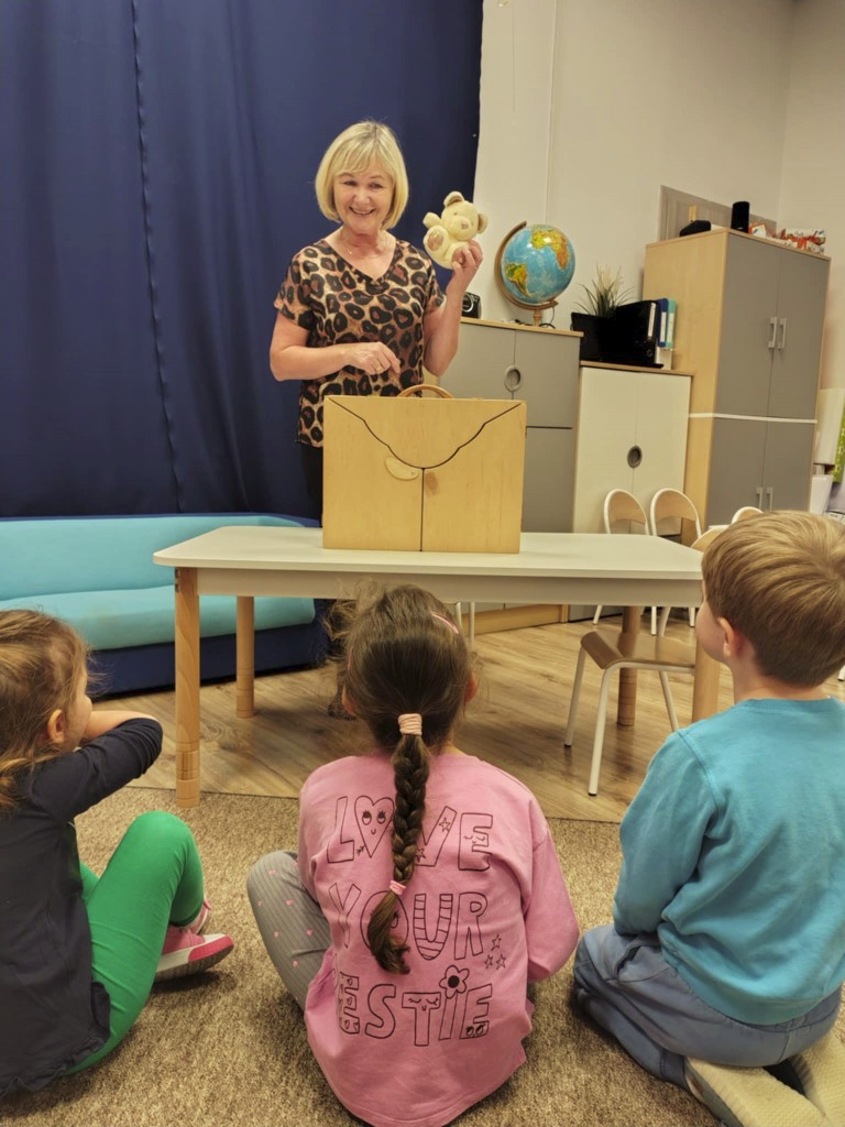 Pani Basia przywiozła ze sobą Teatrzyk Kamishibai, dzięki któremu najmłodsi mogli obejrzeć dwie piękne opowieści: „Złotowłosą i trzy misie” oraz „Mój przyjaciel Pluszowy Miś”.