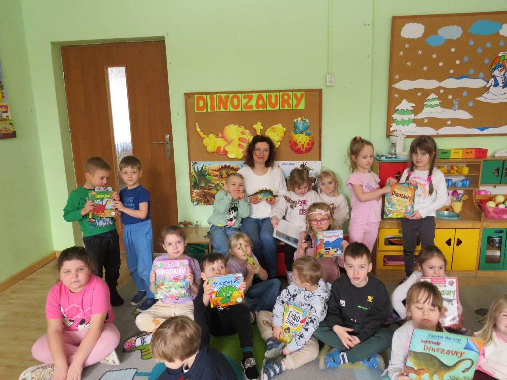 Dzień Dinozaura to popularne święto , które obchodzimy 26 lutego. Z tej okazji bibliotekarka z Filii nr 1 odwiedziła Przedszkole Publiczne nr 2, by za pomocą książek przenieść dzieci w świat prehistorycznych zwierząt. Grupy Pszczółki, Biedronki i Żabki wysłuchały historii Franka, który podczas swojej podróży poznaje różne gatunki dinozaurów, dowiaduje się czym się żywiły i jak wyglądały. U pięciolatków ogromnym zainteresowaniem cieszyła się książka popularnonaukowa pt. „Zapytaj dlaczego wyginęły dinozaury”, publikacja pełna wiadomości i ciekawych ilustracji. Okazało się, że przedszkolaki mają dużą wiedzę na temat tych pradawnych stworzeń.