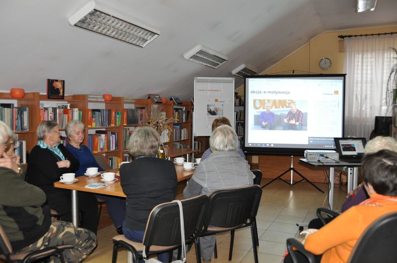 W dniu 5.11.2015 r. w ramach projektu Akcja: e-motywacja seniorzy z Klubu e-Senior uczestniczyli w Bibliotece Głównej w spotkaniu zorganizowanym przez Fundację Orange. Gośćmi spotkania byli Helena Norowicz, aktorka filmowa i teatralna, która w wieku 80 lat została modelką oraz Tomasz Kozłowski, psycholog, szkoleniowiec, ratownik GOPR oraz skoczek spadochronowy. Spotkanie odbywało się na zasadzie przekazu wirtualnego, dzięki któremu seniorzy mogli obejrzeć transmisję i jednocześnie zadawać na czacie pytania zaproszonym gościom.