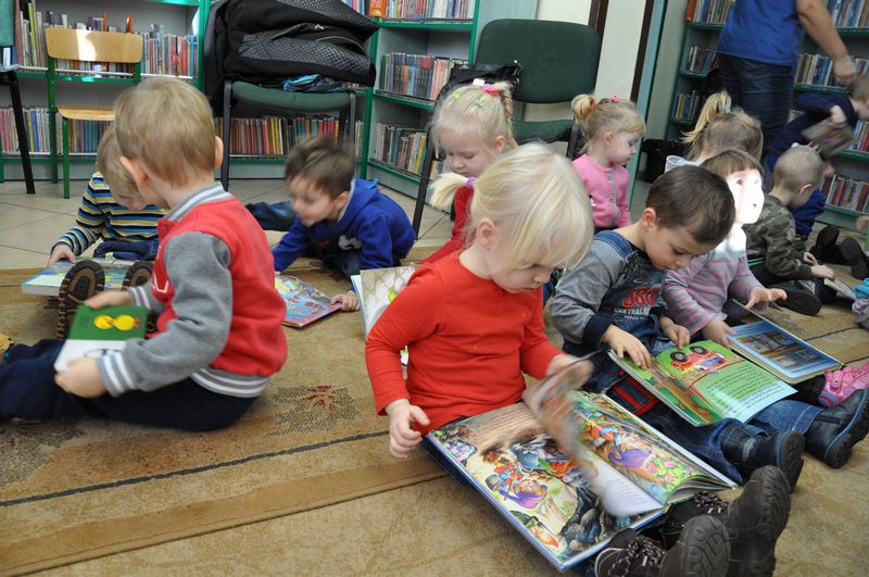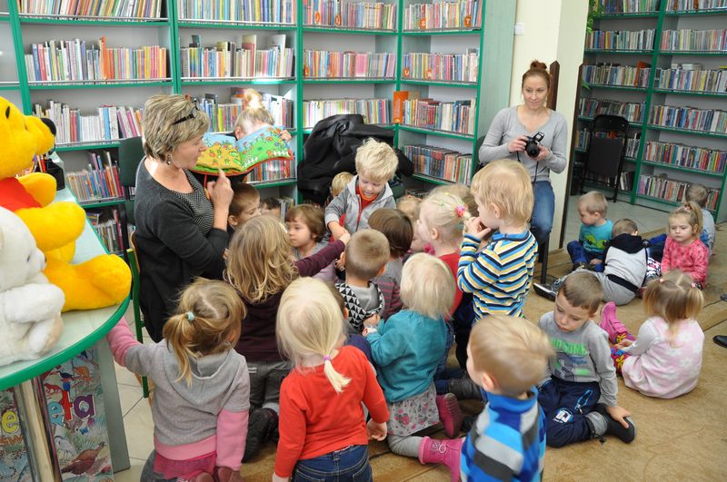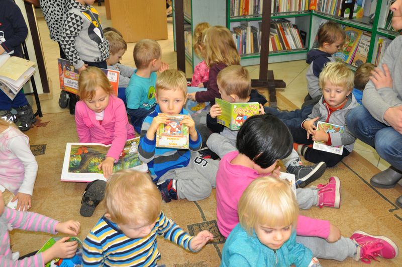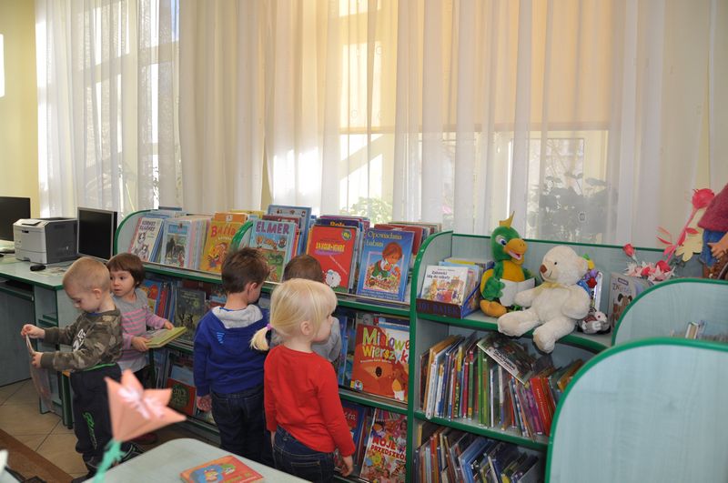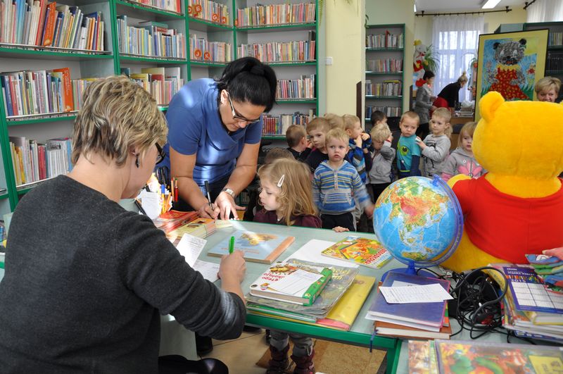 Przedszkolaki aktywnie uczestniczyły w zajęciach, każde dziecko wypożyczyło sobie książkę, a na zakończenie spotkania dzieci otrzymały kolorowe zakładki do książek.