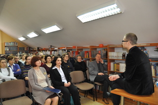 Na koniec autor podpisywywał książki, składał dedykacje, pozował do zdjęć. W spotkaniu uczestniczyły przedstawicielki trzech Dyskusyjnych Klubów Książki: MGBP i Powiatowej Biblioteki Publicznej w Łęcznej,Gminnej Biblioteki Publicznej w Milejowie, młodzież z Liceum Ogólnokształcącego w Łęcznej oraz czytelnicy.