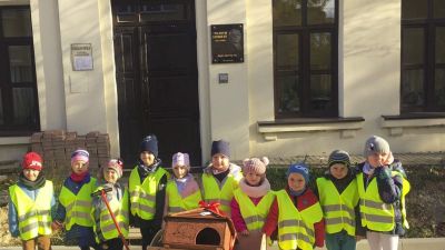 Przedszkolaki obdarowały bibliotekę domkiem dla jeża.