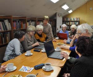 Oprócz nauki obsługi komputera i Internetu seniorzy uczestniczyli w licznych spotkaniach z cyklu „Z Biblioteką jest mi łatwiej”: