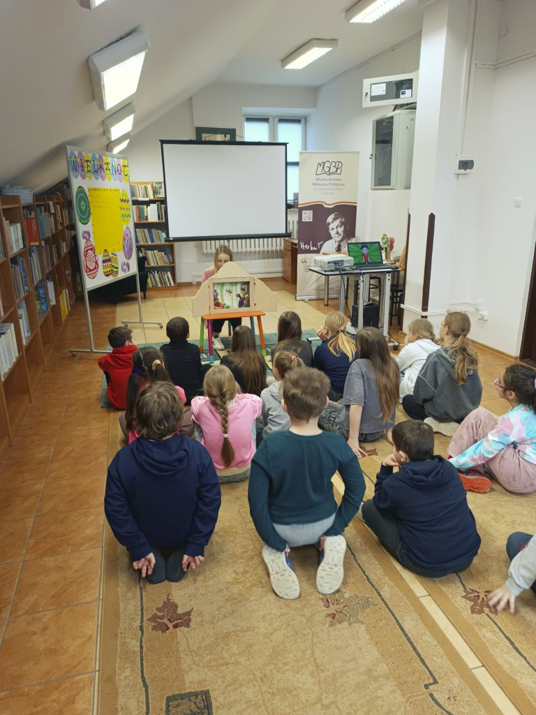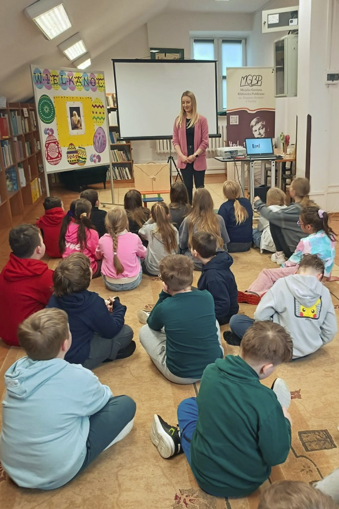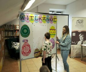 W dniu 31 marca Bibliotekę Główną odwiedziły klasy 2A i 1C ze Szkoły Podstawowej nr 2 im. Tadeusza Kościuszki w Łęcznej. Spotkanie poświęcone było tematyce Wielkanocy.Dzieci obejrzały krótki film o dekorowaniu jajek, wysłuchały teatrzyku kamishibai pt. „Wielkanocny zajączek”, szukały ukrytych jajek oraz brały udział w świątecznym quizie. Uczestnicy zmierzyli się również w wyścigu z jajkiem na łyżce – dzięki zręczności i skupieniu jajko nie spadło żadnemu uczestnikowi. Klasa 2A podzieliła się na dwie grupy – dziewcząt i chłopców. Obie drużyny zasiały rzeżuchę, którą w kolejnych dniach będą pielęgnować bibliotekarki. Z kolei klasa 1C wzięła udział w „bitwie na jajka”, polegającej na stukaniu się ugotowanymi na twardo jajkami w parach. Zwyciężyła osoba, której jajko pozostało nieuszkodzone. Serdecznie dziękujemy za przybycie obu klasom i ich wychowawcom oraz za słodkie upominki. Wesołych Świąt Wielkanocnych.