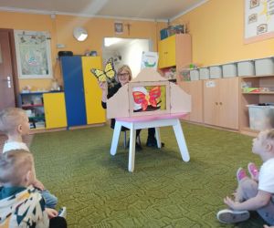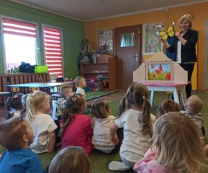 W piękny, słoneczny poranek 19 marca bibliotekarka z Biblioteki przy ul. Bożnicznej 21 odwiedziła przedszkolaków z grupy "Skrzaty" w Przedszkolu Publicznym nr 1 w Łęcznej. Pani Basia zaprezentowała dzieciom bajkę "Magiczna gąsienica" autorstwa Beaty Gabrat, wykorzystując teatrzyk Kamishibai. Maluchy z dużym zainteresowaniem śledziły historię gąsienicy, która w magiczny sposób przemieniła się w kolorowego motyla. Po przedstawieniu dzieci miały okazję wybrać książki w ramach akcji "Koszyk z książkami", które mogły zabrać do domu.