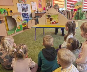 W dniu 18 lutego odbyło się spotkanie z dziećmi z grupy „Skrzaty” i „Jagódki” w Przedszkolu nr 1 w Łęcznej zorganizowane z okazji Dnia Kota. Bibliotekarka z Biblioteki przy ul. Bożnicznej 21 odwiedziła dzieci, aby uczcić to sympatyczne święto. Celem spotkania było przybliżenie dzieciom świata kotów poprzez książki i opowieści. Spotkanie rozpoczęło się od głośnego czytania książki Wiesława Drabika pt. „Dzień Kota”. Książka w przystępny i zabawny sposób opowiadała historię związaną z tym wyjątkowym dniem, a dzieci z wielkim zaciekawieniem słuchały i angażowały się w rozmowy, odpowiadając na pytania bibliotekarki. Po książce przyszedł czas na teatrzyk Kamishibai z bajką pt. „Kotka Psotka”. Opowieść o kotce, która przez przypadek zamieniła się z czarnej w białą po tym, jak wpadła do mąki, wywołała wśród dzieci mnóstwo emocji – od śmiechu po zdziwienie, a także radość. Na zakończenie zajęć dzieci otrzymały kolorowanki z motywem kota, co dało im szansę na rozwinięcie swoich artystycznych zdolności i utrwalenie tematu dnia.