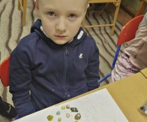 W piątek 7 lutego uczniowie klasy 0 „b” uczestniczyli w warsztatach plastycznych „Złoty skarb”. Dzieci lepiły z plasteliny skarb według własnego pomysłu. Następnie wkładały prace do skrzyni skarbów przyniesionej przez panią wychowawczynię. Po zakończonej pracy, uczniowie obejrzeli baśń H. Ch. Andersena „Złoty skarb” i porównali swoje skarby z tym z baśni. Ku ich zaskoczeniu baśniowym skarbem nie okazały się klejnoty…
