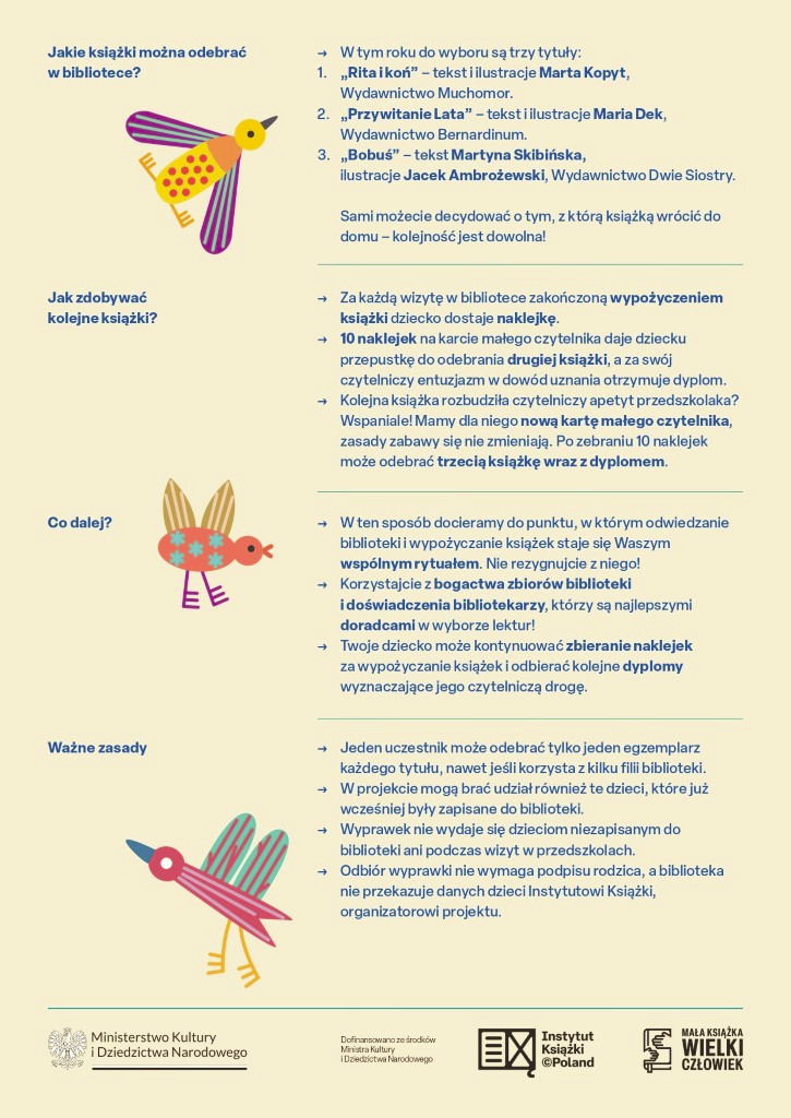 Program „Mała książka – wielki człowiek” jest realizowany przez Instytut Książki ze środków Ministra Kultury i Dziedzictwa Narodowego.