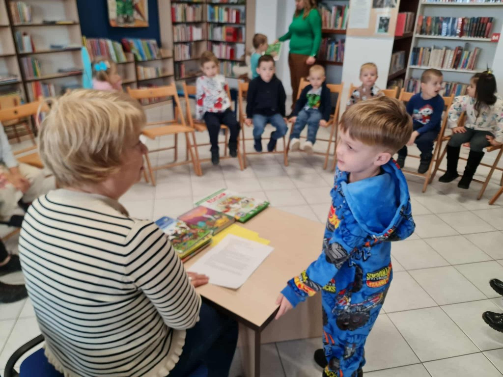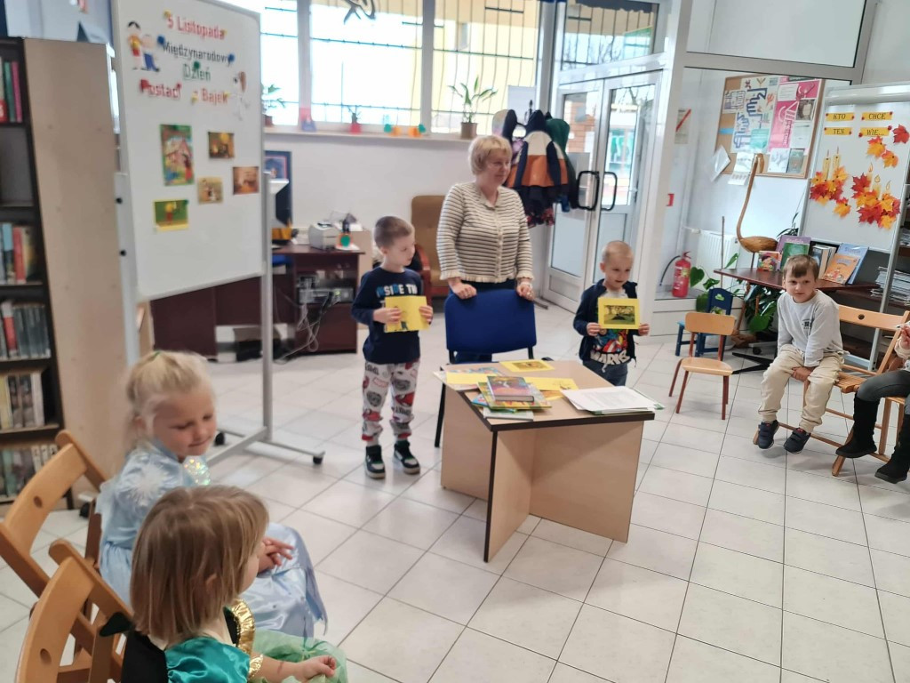 W dniu 6 listopada z okazji Międzynarodowego Dnia Postaci z Bajek /przypadającego na 5 listopada/ odbyły się zajęcia dla dzieci z Przedszkola Publicznego nr 4 z grup „Sowy” . Przedszkolaki opowiadały o bajkach, które czytają im rodzice lub dziadkowie lub, o tych które znają z telewizji. Ze znanych sobie bajek, najczęściej wymieniali Bley, Spiderman, Hulk, Roszpunka, Natomiast bibliotekarka opowiedziała dzieciom bajki jej dzieciństwa . A były to m.in. Reksio, Bolek i Lolek , Zaczarowany ołówek, Krecik. Miś Uszatek. Dzieci żywo reagowały na opowieści o postaciach bajkowych, których nie znają. Bibliotekarka dzięki dzieciom dowiedziała się o współczesnych bajkach. Taka wymiana była ciekawa i inspirująca dla obu stron. Było dużo zdziwienia i śmiechu. Na koniec zajęć dzieci odgadywały postaci z bajek i głosowały na najciekawszą bajkę. Grupa „Sowy” wybrała bajkę pt. „Reksio”.