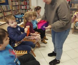 22 stycznia Filię nr 3 odwiedziły „Sówki” z Niepublicznego Przedszkola „Mali Odkrywcy”. Dzieci wysłuchały wierszyków i piosenek nawiązujących do Dnia Babci i Dziadka oraz obejrzały film edukacyjny na temat rodziny i szczególnej roli dziadków. Przedszkolaki zapoznały się również z książeczkami o niezwykłych babciach i dziadkach oraz opowiadały o swoich ciepłych uczuciach do swoich babć i dziadków. Dziękujemy za miłe spotkanie i zapraszamy na kolejne.