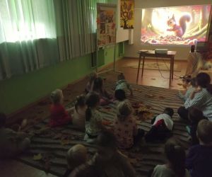 30 października Filię nr 3 odwiedziły dzieci z Niepublicznego Przedszkola „Mali Odkrywcy”. „Biedronki”, w towarzystwie misia, wysłuchały wierszy o jesieni, a następnie odpoczywały przy dźwiękach muzyki relaksacyjnej. Przedszkolaki obejrzały również bajeczkę o wiewiórce Nutce, która nie chciała się dzielić. Wiewiórka gromadziła zapasy na zimę, myśląc jedynie o sobie. Nie zważała na inne zwierzątka i ich potrzeby. Pewnego dnia Nutka była bardzo smutna, ponieważ nikt jej nie odwiedzał, ani nie bawił się z nią na polanie. Kiedy pewnego razu spotkała jeża, na początku nie zamierzała mu pomagać, ale w końcu postanowiła zmienić swoje zachowanie. Udzieliła mu pomocy w turlaniu wielkiego orzecha. Następnie zaprosiła go do domu na pyszny kompot truskawkowy. W ten sposób wiewiórka zyskała przyjaciela oraz nauczyła się dzielenia i współpracy. Dziękujemy Paniom i dzieciom za miłe spotkanie.