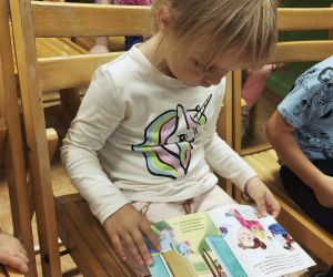 Na początku września naszą bibliotekę odwiedziła grupa „Sówki” z Niepublicznego Przedszkola „Mali Odkrywcy”. Dzieci wysłuchały opowiadań: „Pierwszy dzień w przedszkolu” oraz „Mama się spóźnia” Anny Włodarkiewicz z książki „Tola w przedszkolu”, jak również „W przedszkolu jest fajnie” Anny Korycińskiej. Przedszkolaki chętnie wysłuchały tekstów i odpowiadały na pytania. Celem spotkania było rozwijanie zainteresowań czytelniczych wśród dzieci, jak również wsparcie w procesie adaptacji.
